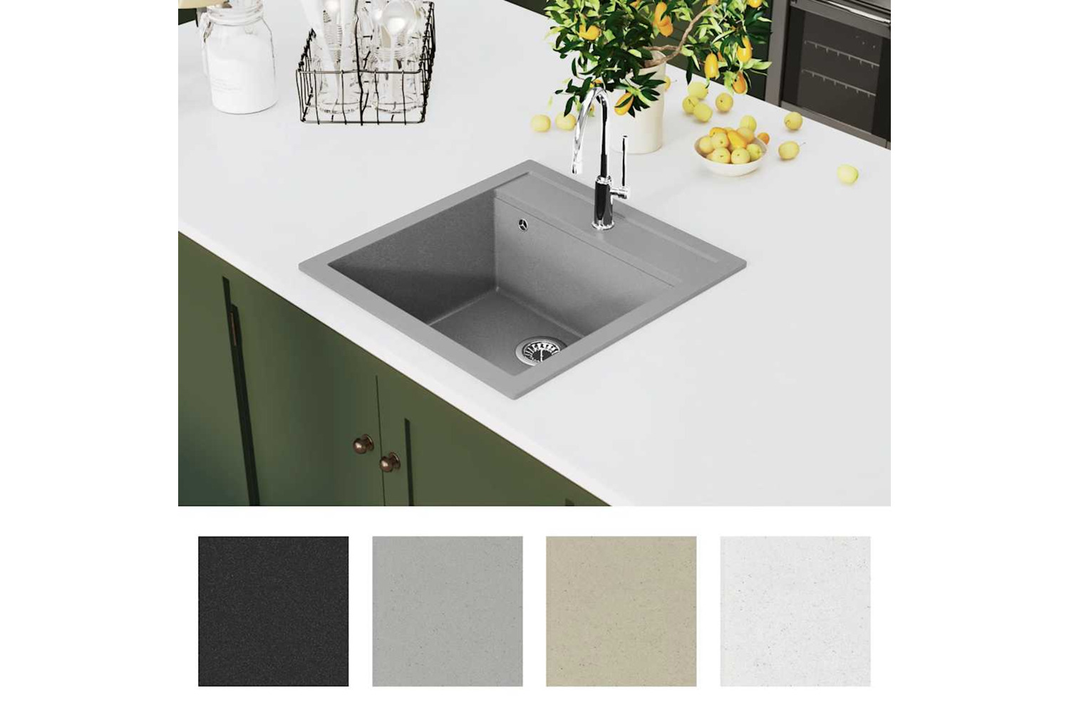 Our granite kitchen sink will be a timeless addition to your kitchen decor. It has a single, extra-deep basin and a sleek design.