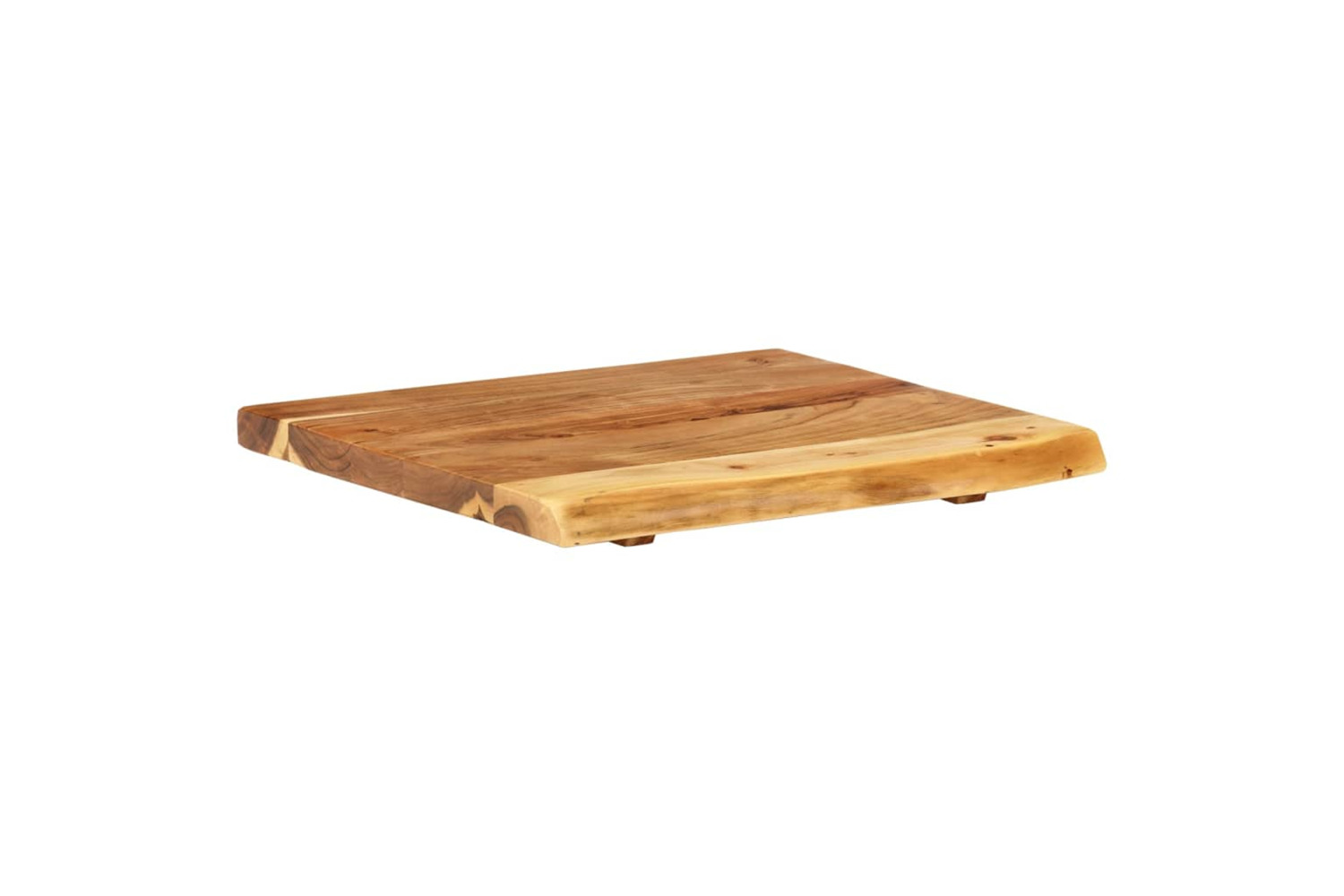This bathroom countertop is made of solid acacia wood, a tropical hardwood, which is dense, sturdy and durable. The solid acacia wood has been polished, painted and lacquered to seal it and protect it from moisture. The bathroom worktop is crafted from tree trunk and features a live wood edge, which preserves the beauty of the wood.