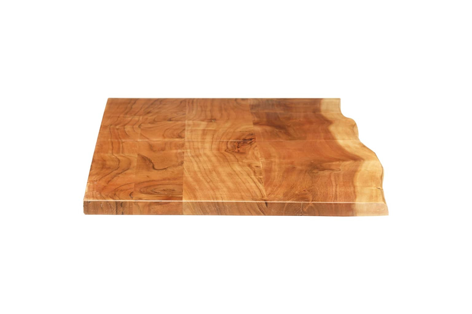 This bathroom countertop is made of solid acacia wood, a tropical hardwood, which is dense, sturdy and durable. The solid acacia wood has been polished, painted and lacquered to seal it and protect it from moisture. The bathroom worktop is crafted from tree trunk and features a live wood edge, which preserves the beauty of the wood.