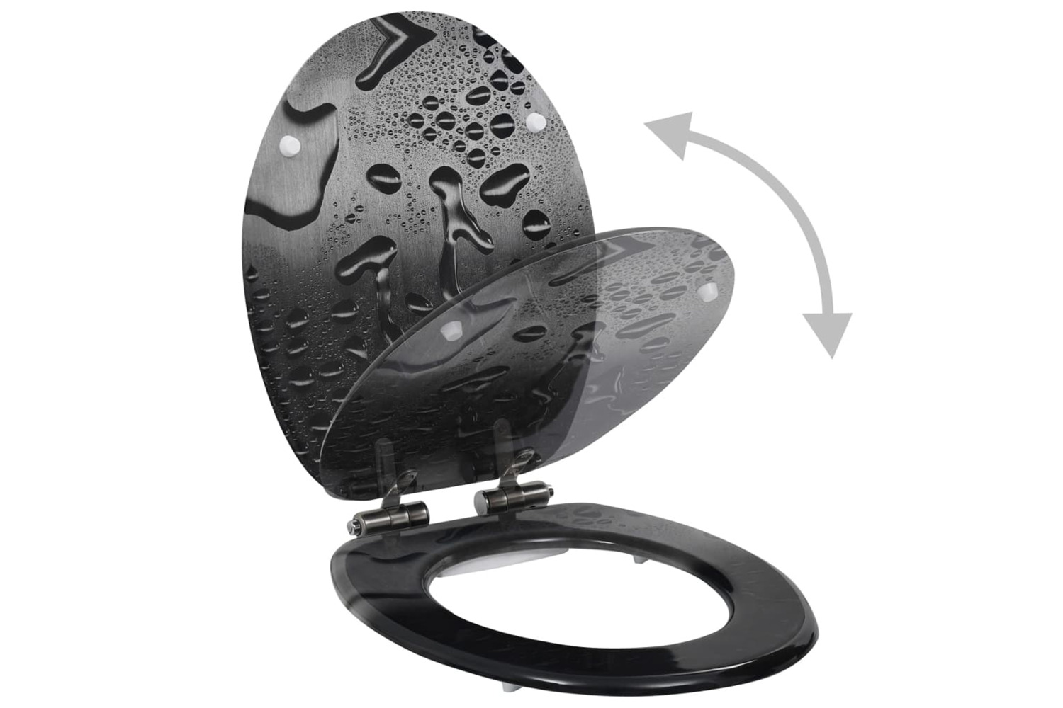 Its MDF lid and seat are exceedingly sturdy and hard-wearing. The hinges are made of extra strong chrome-zinc alloy. Additionally, the toilet seat features soft closing function, enabling it to close and open gently and quietly both to prevent noise being made, as well as give you a long lasting lifetime.