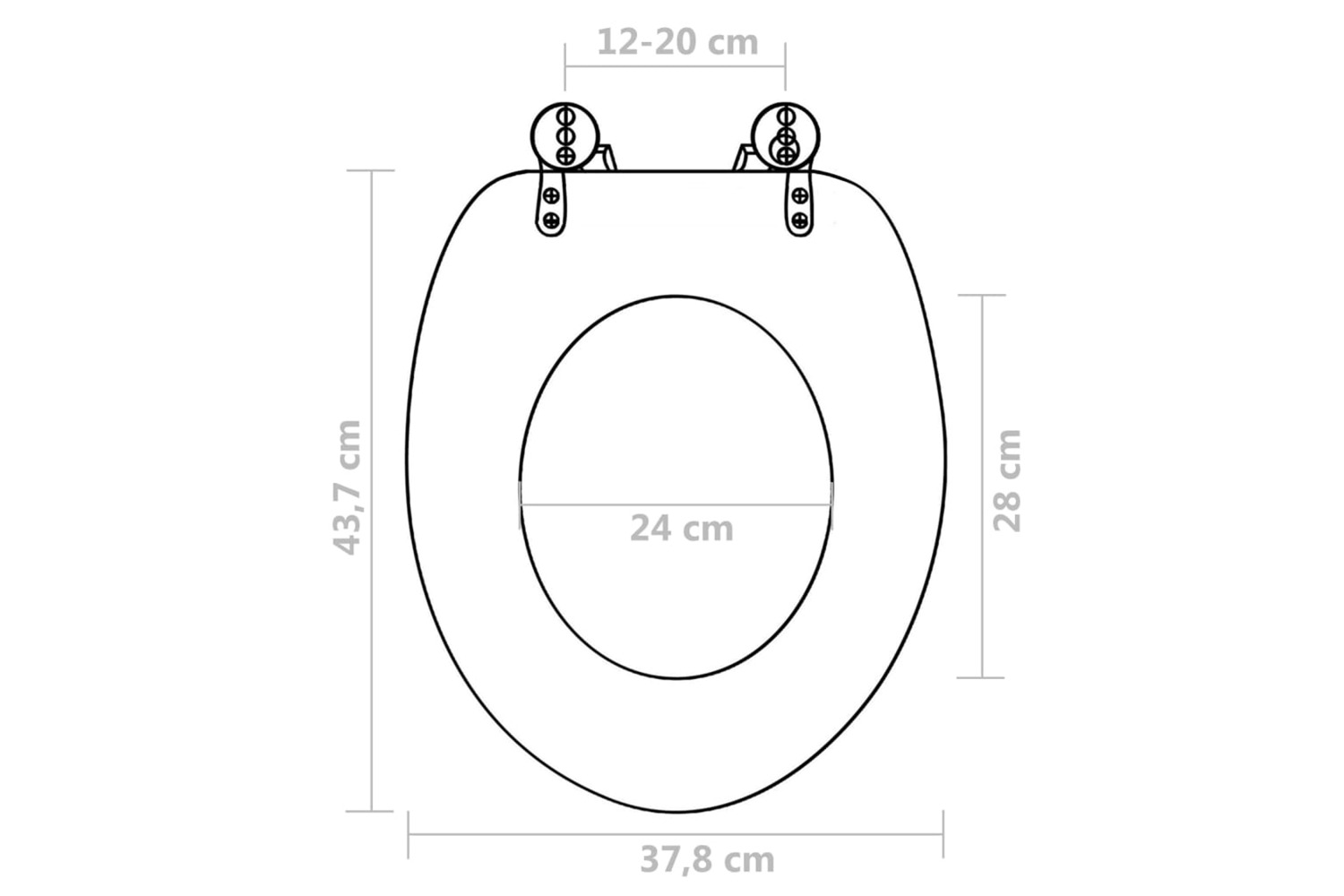This WC seat fits all common toilet bowls as the width of the hinges can be adjusted from 12 to 20 cm.