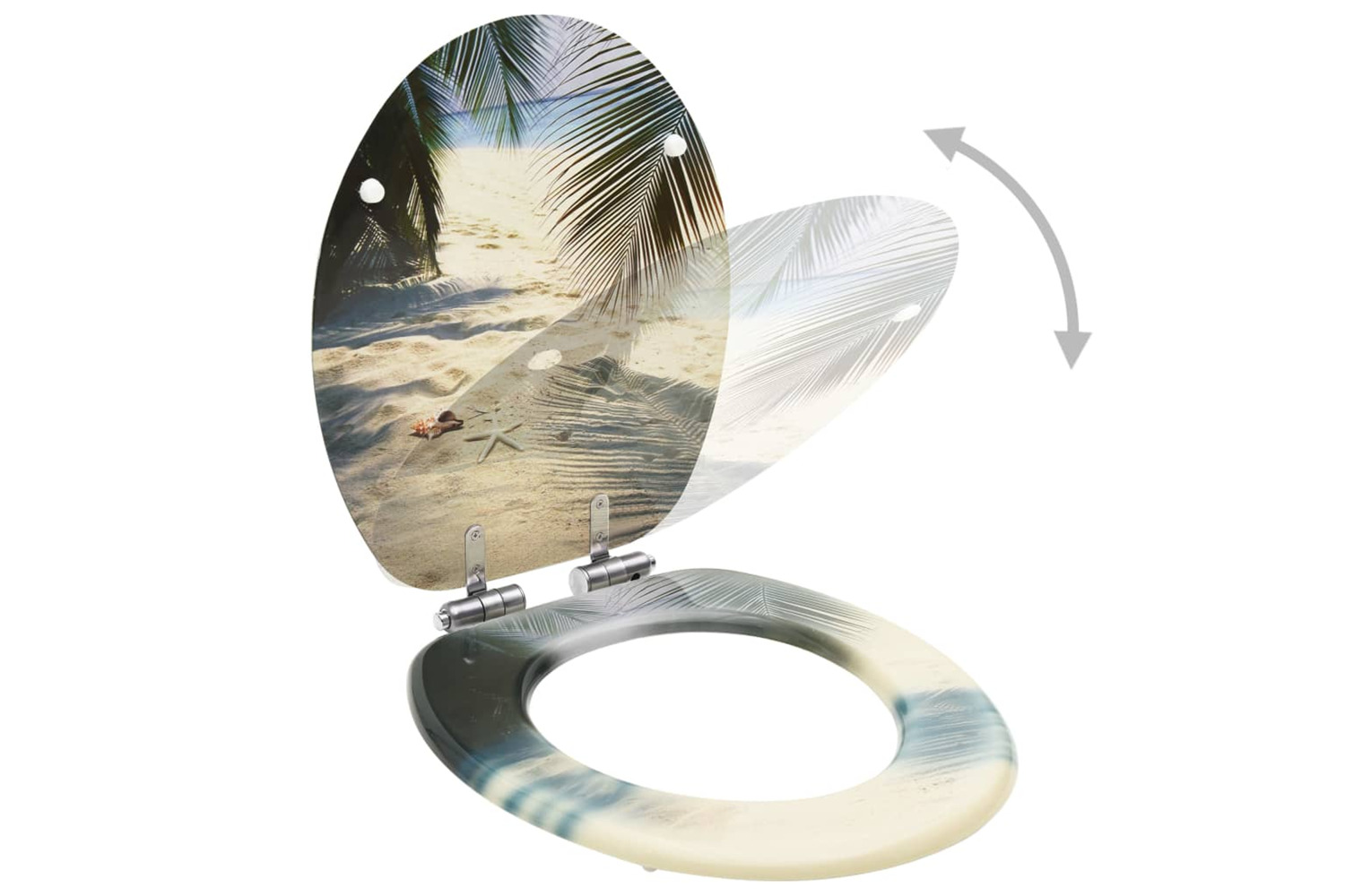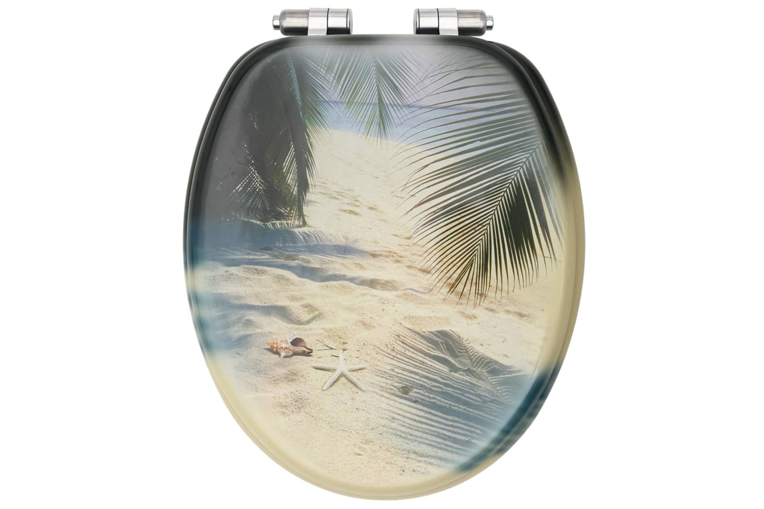 Its MDF lid and seat are exceedingly sturdy and hard-wearing. The hinges are made of extra strong chrome-zinc alloy. This toilet lid has a soft-close function, which means it closes slowly and quietly.