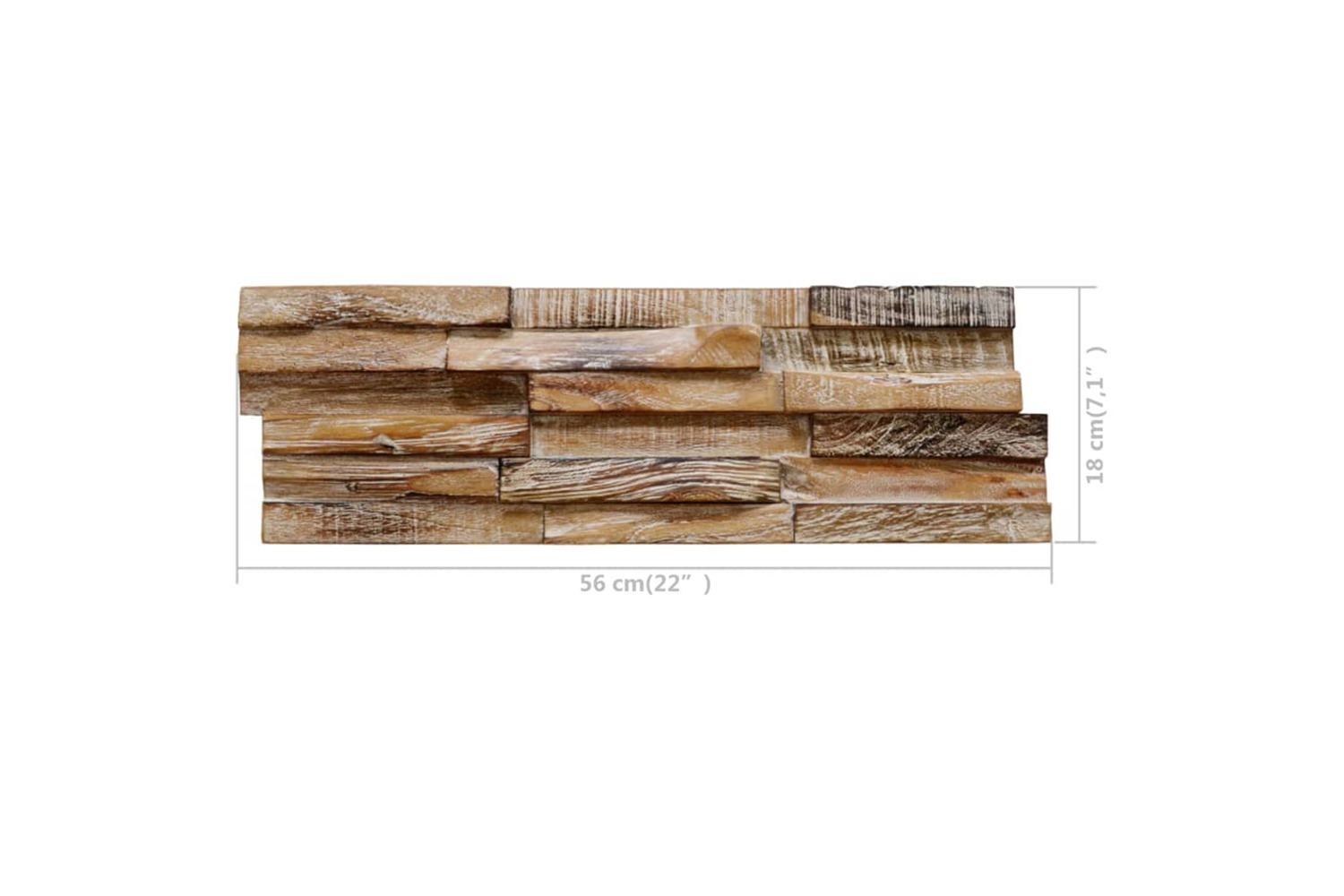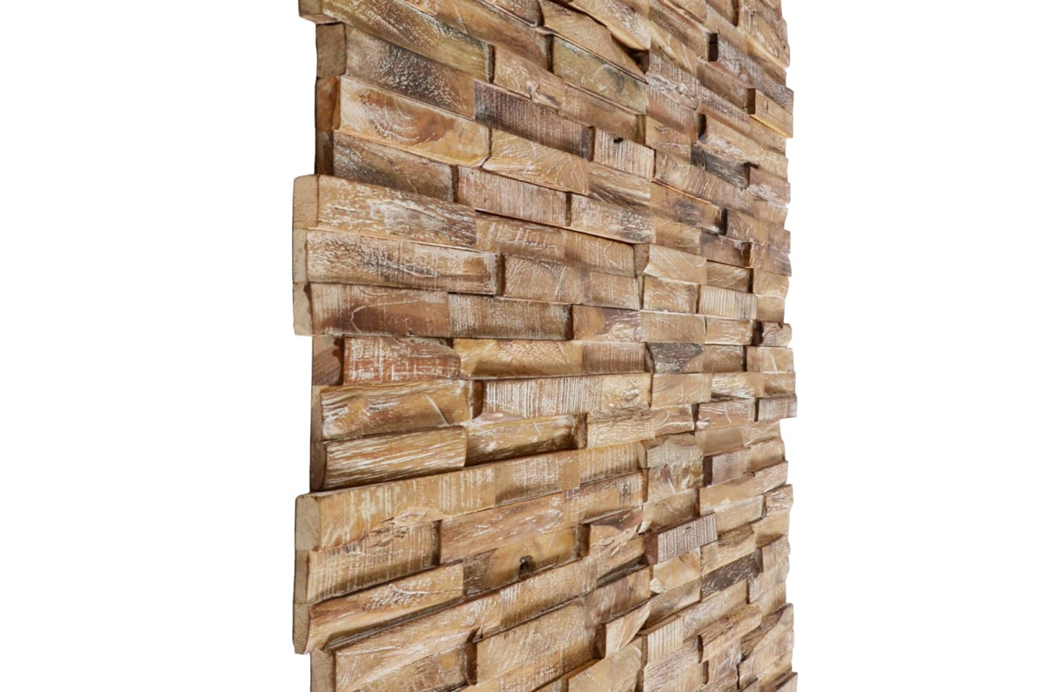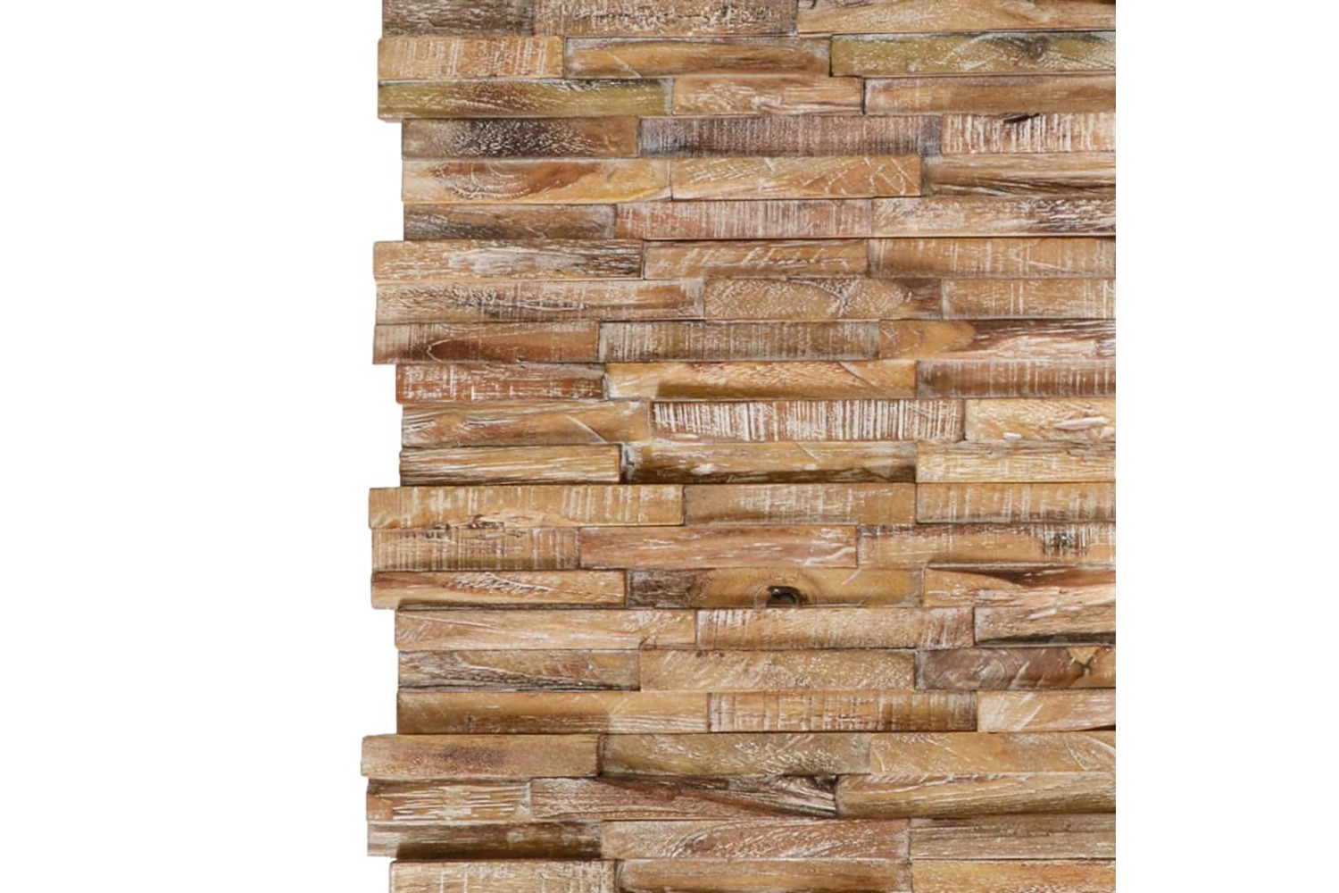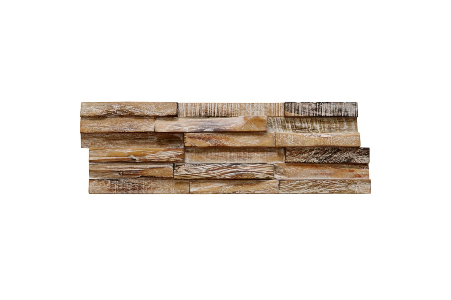 The wall cladding panels are made of durable, solid teak with a whitewash finish, adding to their rustic look resembling a stack of boards. These beautiful decorative wall panels are very easy to install. The delivery contains 10 pieces, which makes up a total surface area of 1.01 m?.