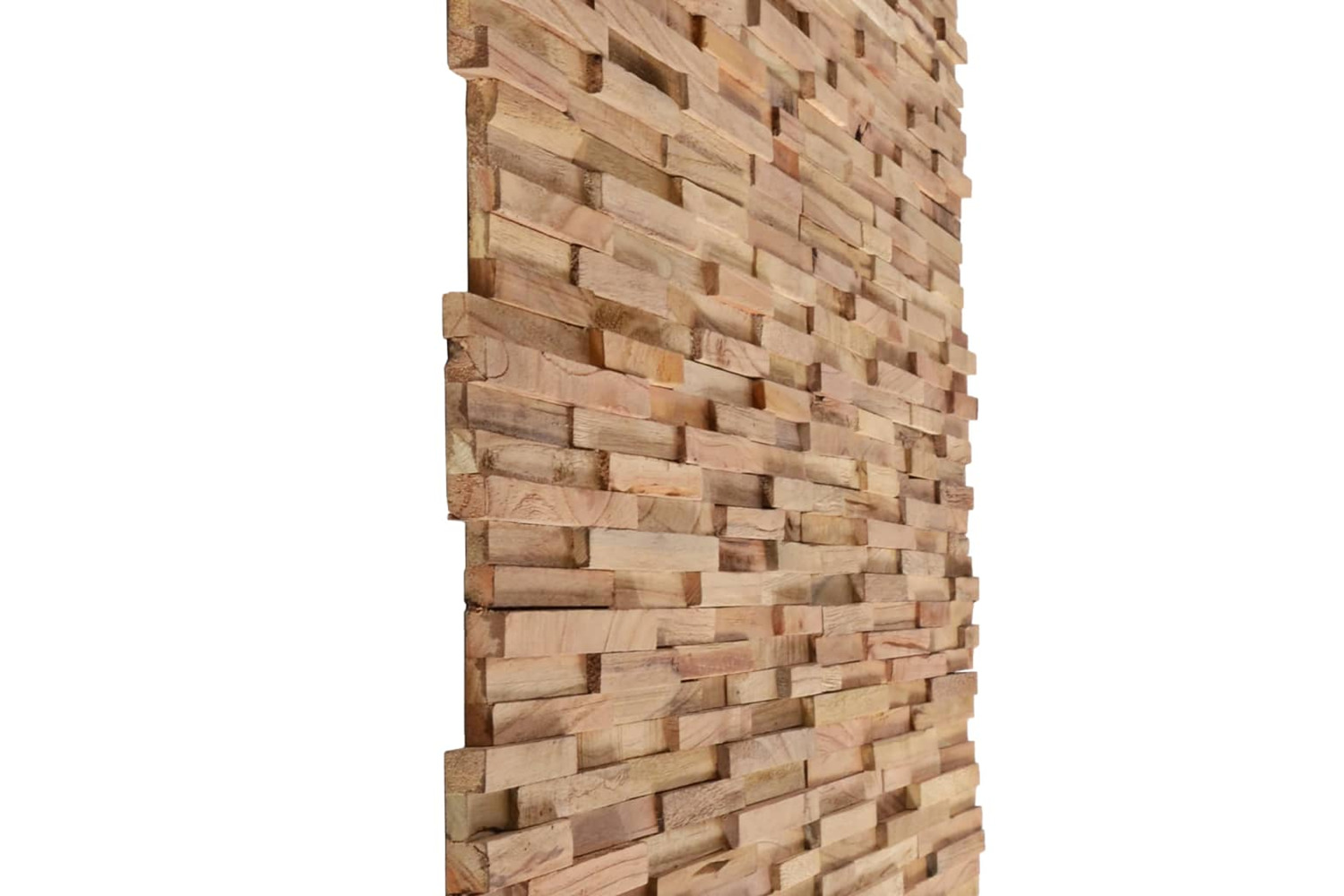 These decorative wall finishing panels are meant to highlight any room with their weathered, natural look.The wall cladding panels are made of durable, solid teak with a natural finish, adding to their rustic look resembling a stack of boards. These beautiful decorative wall panels are very easy to install. The delivery contains 10 pieces, which make up a total surface area of 1.08 m?.