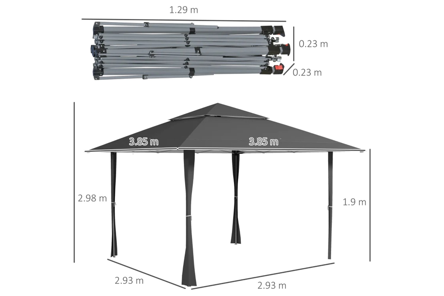 This Outsunny pop-up gazebo creates shelter easily, whenever you need it - great for outdoor parties, gatherings, camping trips and more. The frame is made from strong steel, fitted with a canopy to protect you inside. The small vent allows air to pass easily. Comes with guy ropes and ground stakes to secure gazebo into place. Frame folds and comes with carry bag - carry around easily.