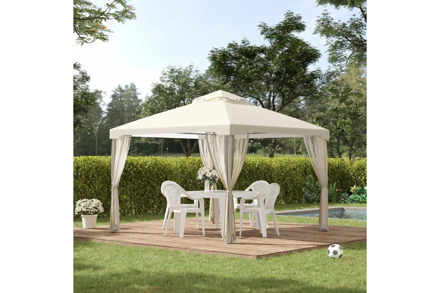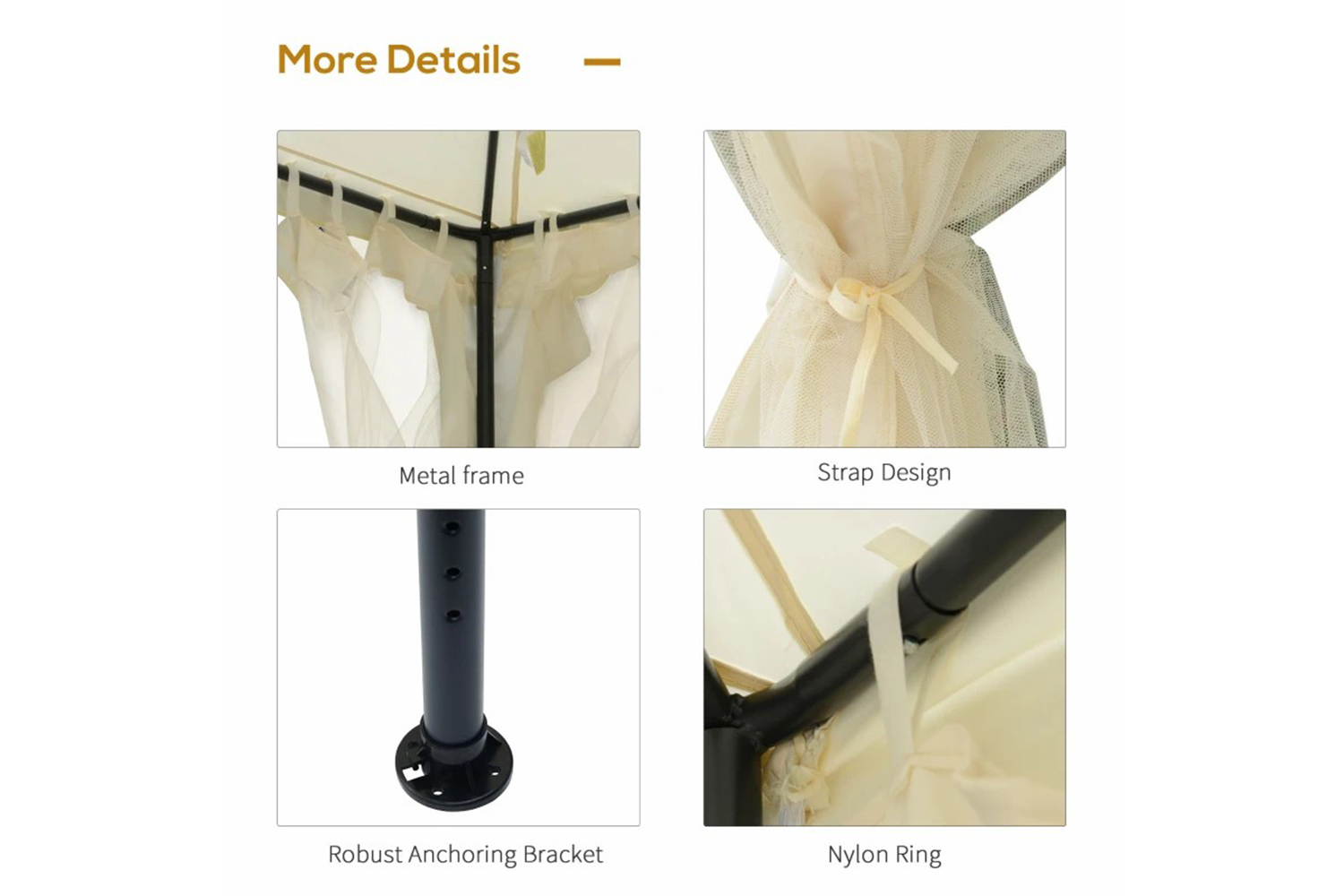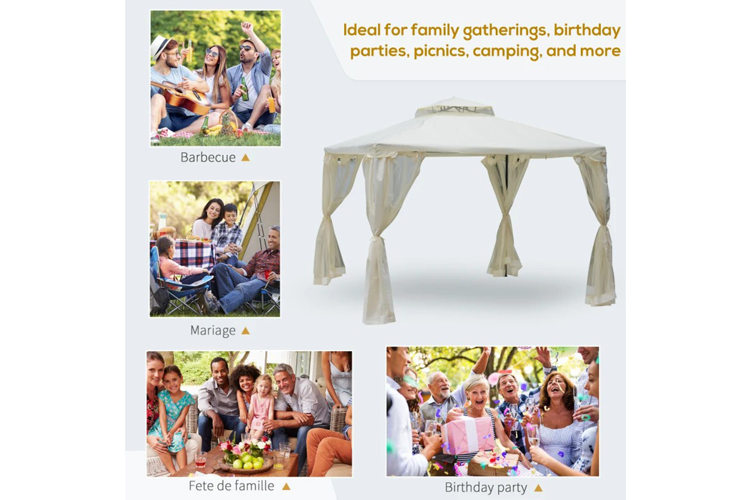 - Powder coated strong metal frame, sturdy enough to provide secure space for gatherings