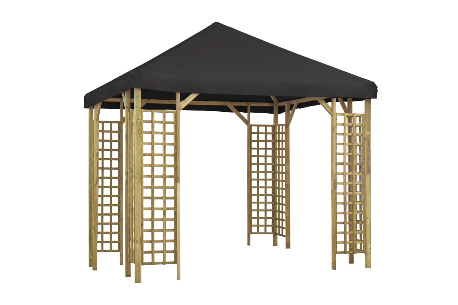 Made of 100% polyester with PVC coating, the roof protects you from the glare and harmful UV rays of direct sunlight. It is also water and dust resistant. The canopy has a solid and heavy impregnated pinewood construction with decorative square details, making it solid and eye-catching. This frame is with high strength, hardness, dimensional stability and resistance to decay. Additionally, this item is easy to assemble.