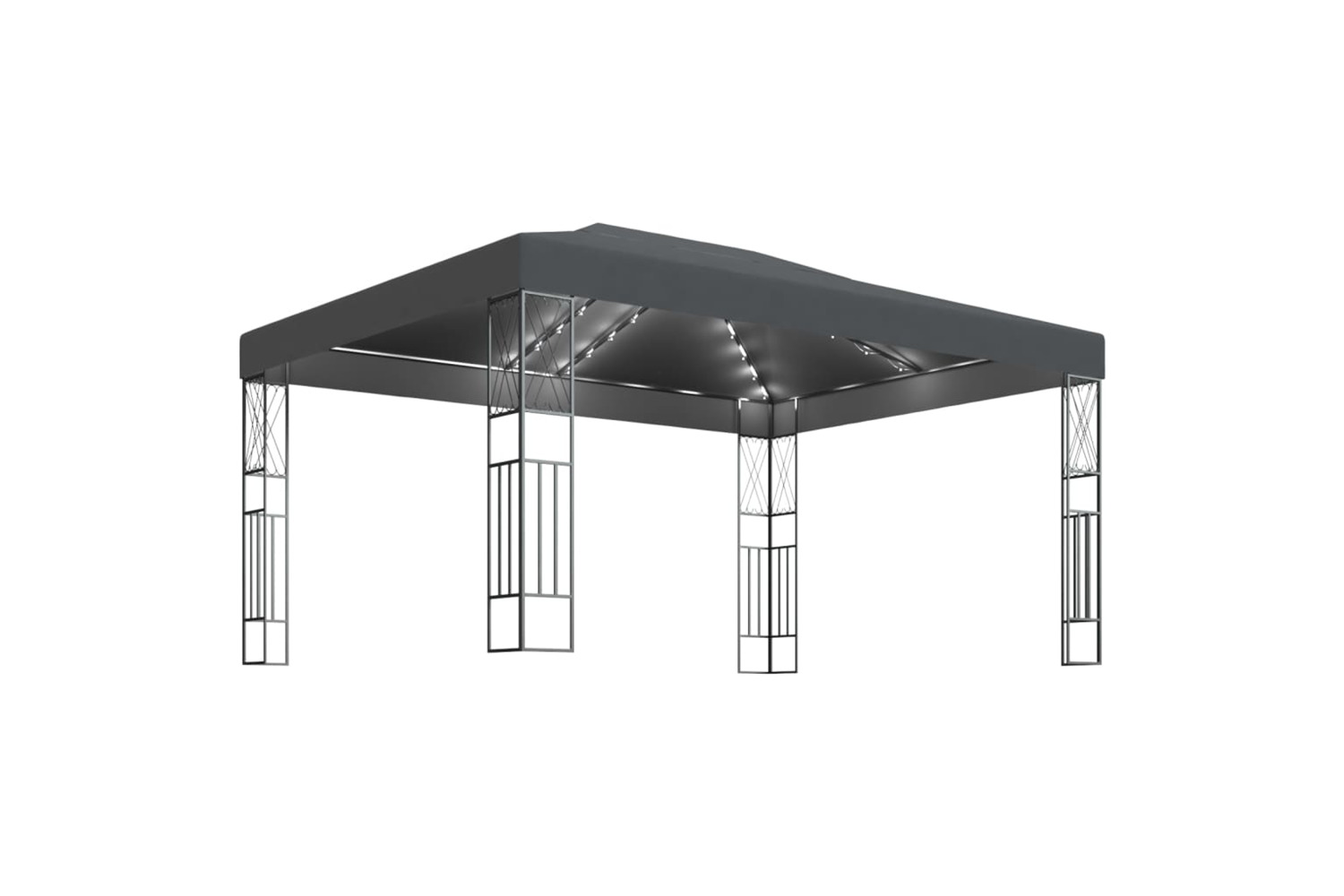 The vented canopy will keep the sun and rain from spoiling the fun at family gatherings, barbecues, afternoon picnics, and birthday parties. The gazebo has a sturdy steel construction with decorative cross shape details and a polyester roof. The canopy can be easily attached to the steel frame. Additionally, the string light creates a cosy atmosphere in your garden when the sun goes down. The lights bring no pollutions to the environment as it is charged by solar energy during the day.