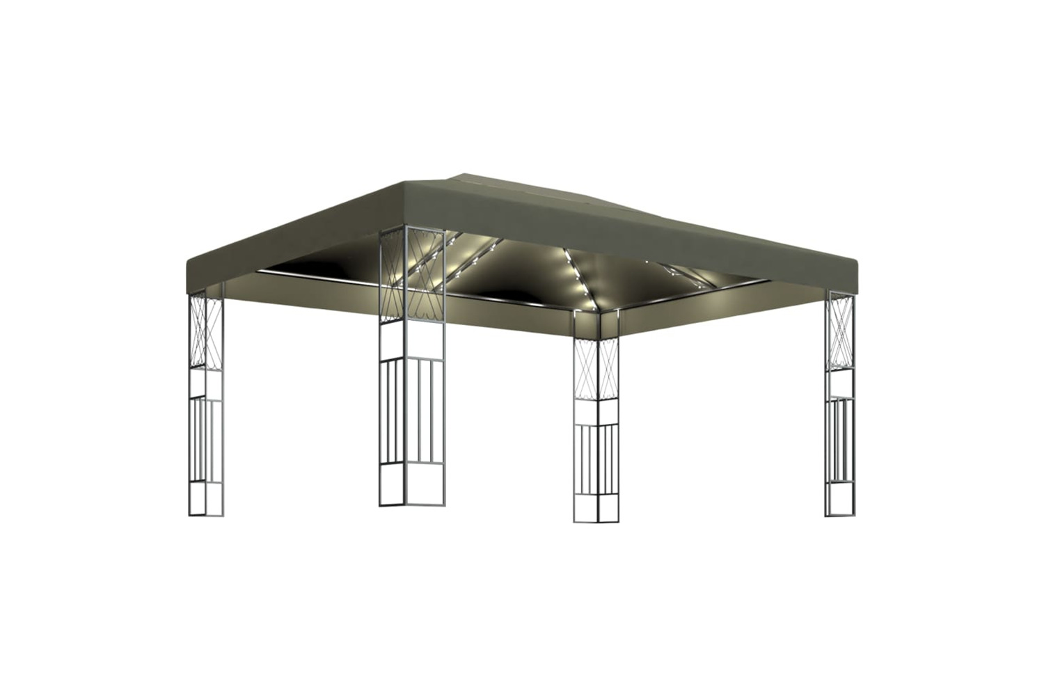 The vented canopy will keep the sun and rain from spoiling the fun at family gatherings, barbecues, afternoon picnics, and birthday parties. The gazebo has a sturdy steel construction with decorative cross shape details and a polyester roof. The canopy can be easily attached to the steel frame. Additionally, the string light creates a cosy atmosphere in your garden when the sun goes down. The lights bring no pollutions to the environment as it is charged by solar energy during the day.
