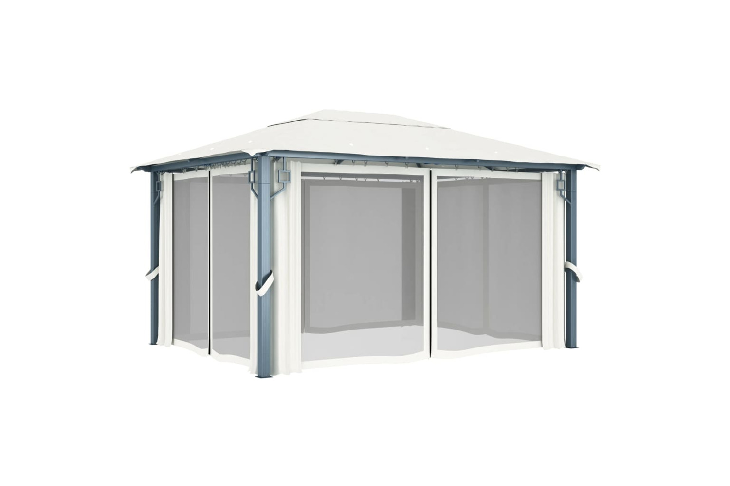 The roof, made of Oxford fabric with PA painting, guards you from the glare and harmful UV rays of direct sunlight. The gazebo is solidly constructed from strong aluminium and steel, and is consequently resistant to rust and very stable. The pavilion is delivered with 4 sidewalls, which can be drawn in bad weather. Mesh screens are also included to keep bugs out while ensure the well air circulation. Hook and loop fasteners are also included for easy attachment. Additionally, the string light creates a cosy atmosphere in your garden when the sun goes down. The lights bring no pollutions to the environment as it is charged by solar energy during the day.