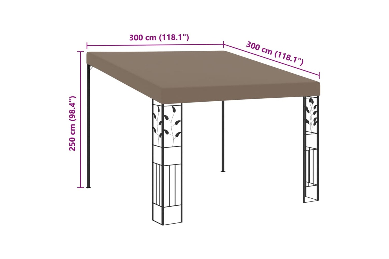 - Overall dimension: 3 x 3 x2.05/2.62m (L x W x H)