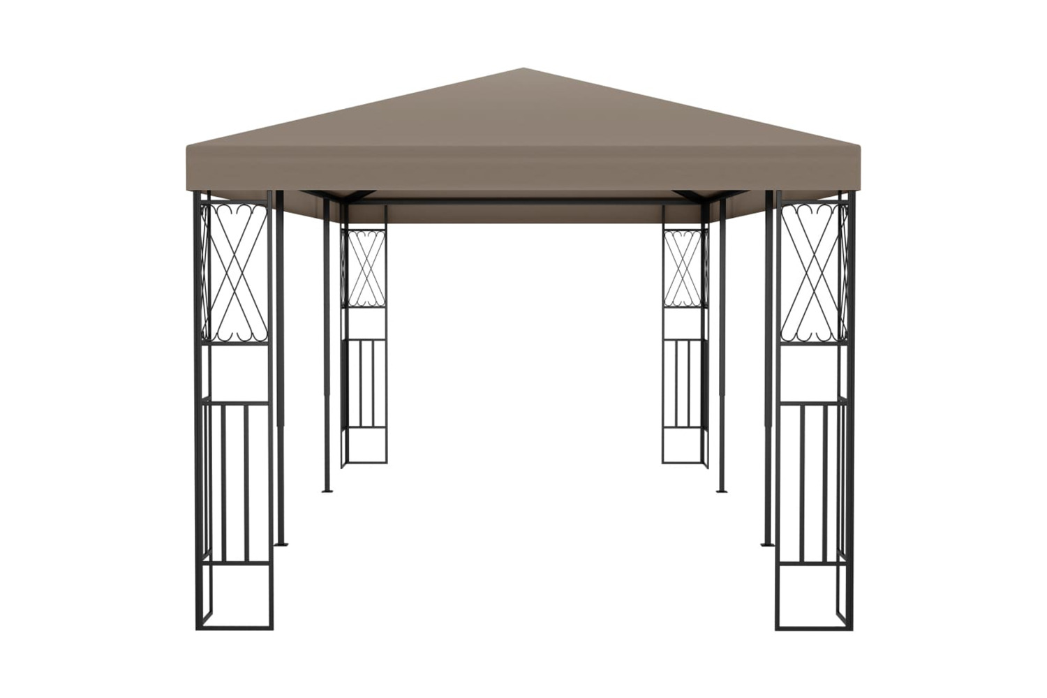 The canopy will keep the sun and rain from spoiling the fun at family gatherings, barbecues, afternoon picnics, and birthday parties. The gazebo has a sturdy steel construction with decorative cross shape details and a polyester roof. The canopy can be easily attached to the steel frame.