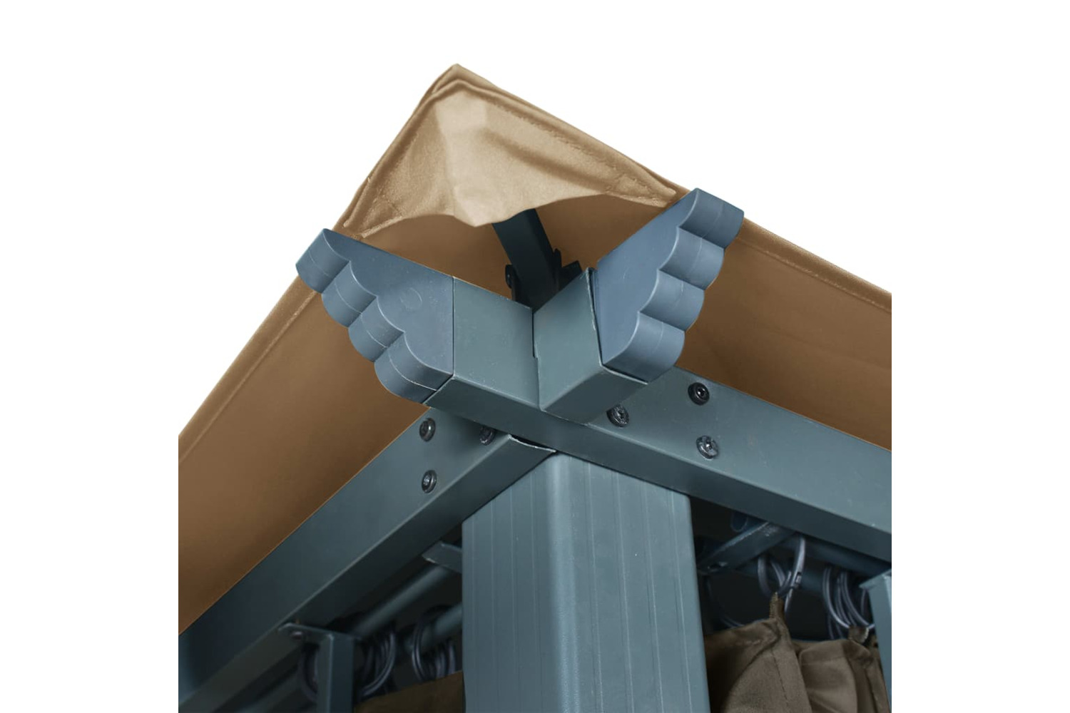 The roof, made of Oxford fabric with PA painting, guards you against the glare and harmful UV rays of direct sunlight. The gazebo is solidly constructed from strong aluminium and steel, and is consequently resistant to rust and very stable. The pavilion is delivered with 4 sidewalls, which can be drawn in bad weather. Mesh screens are also included to keep bugs out while ensuring the well air circulation. Hook and loop fasteners are also included for easy attachment.