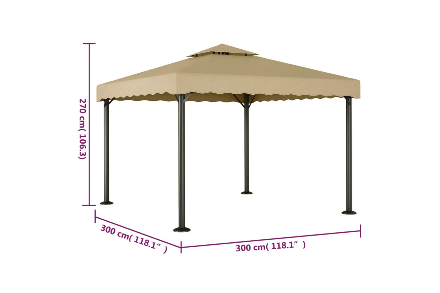 - Sturdy and stable frame: The frame of the garden gazebo is made of aluminium and powder-coated steel, making it strong, sturdy and long-lasting for outdoor use.