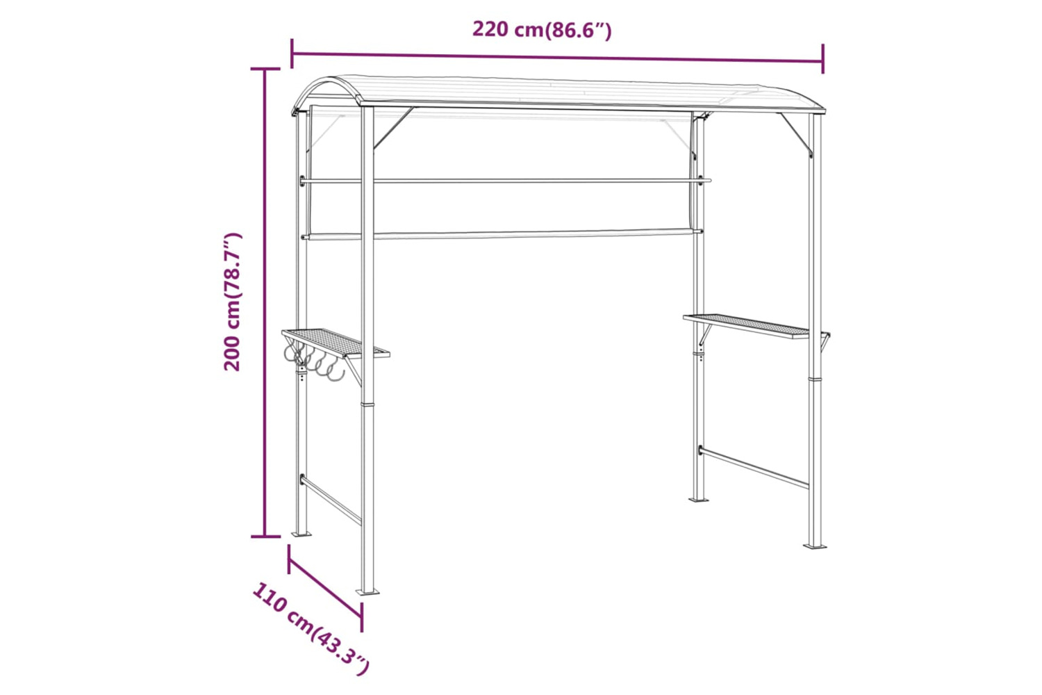 - Dimensions: 220 x 110 x 200 cm (L x W x H)
