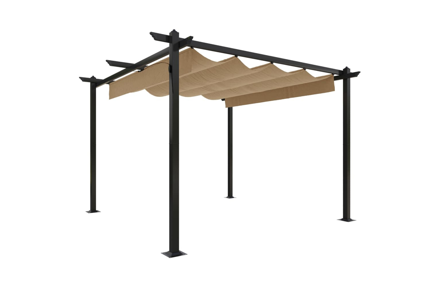 This outdoor gazebo is manufactured with a powder-coated steel frame, making it sturdy and stable. This gazebo is equipped with a retractable PA-coated roof, which is UV- and water resistance. You can easily rotate and adjust the roof to the ideal position by simply shaking the hand pole. Open it when you want to enjoy the sun and close for shade or shelter. This gazebo is a perfect choice for your outdoor activities.