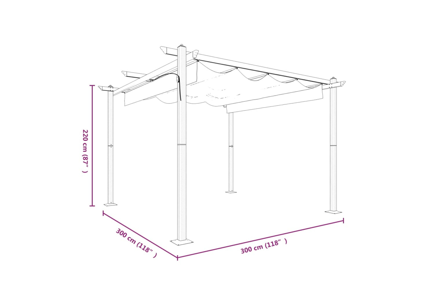 - Dimensions: 3 x 3 x 2.2 m (L x W x H)