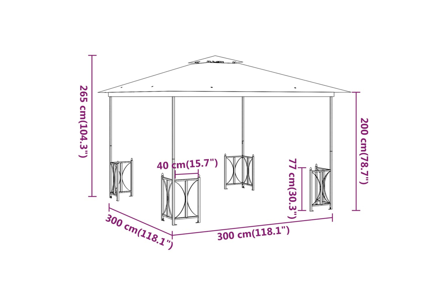 - Premium material: The garden gazebo is constructed with a powder-coated steel frame. Hence, it is very sturdy and durable. The roof is made of 100% polyester with PA coating, which is water-resistant and can block the most harmful rays.