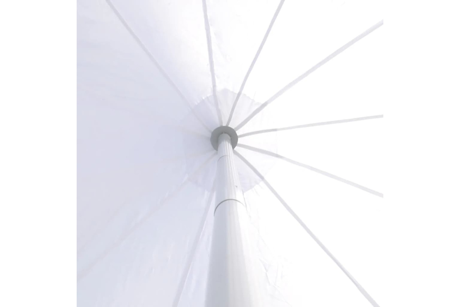 This gazebo/tent is easy and quick to set up on grass or dirt surfaces with six included pegs. It only takes a few minutes!!!. This star gazebo can cover up to an area of 14 meters in diameter. Made of UV resistant and Weather proof Oxford Fabric, it will bring along years of service.