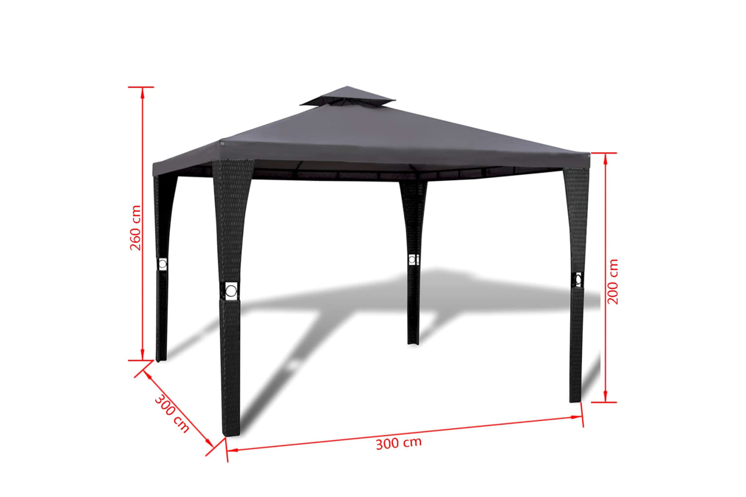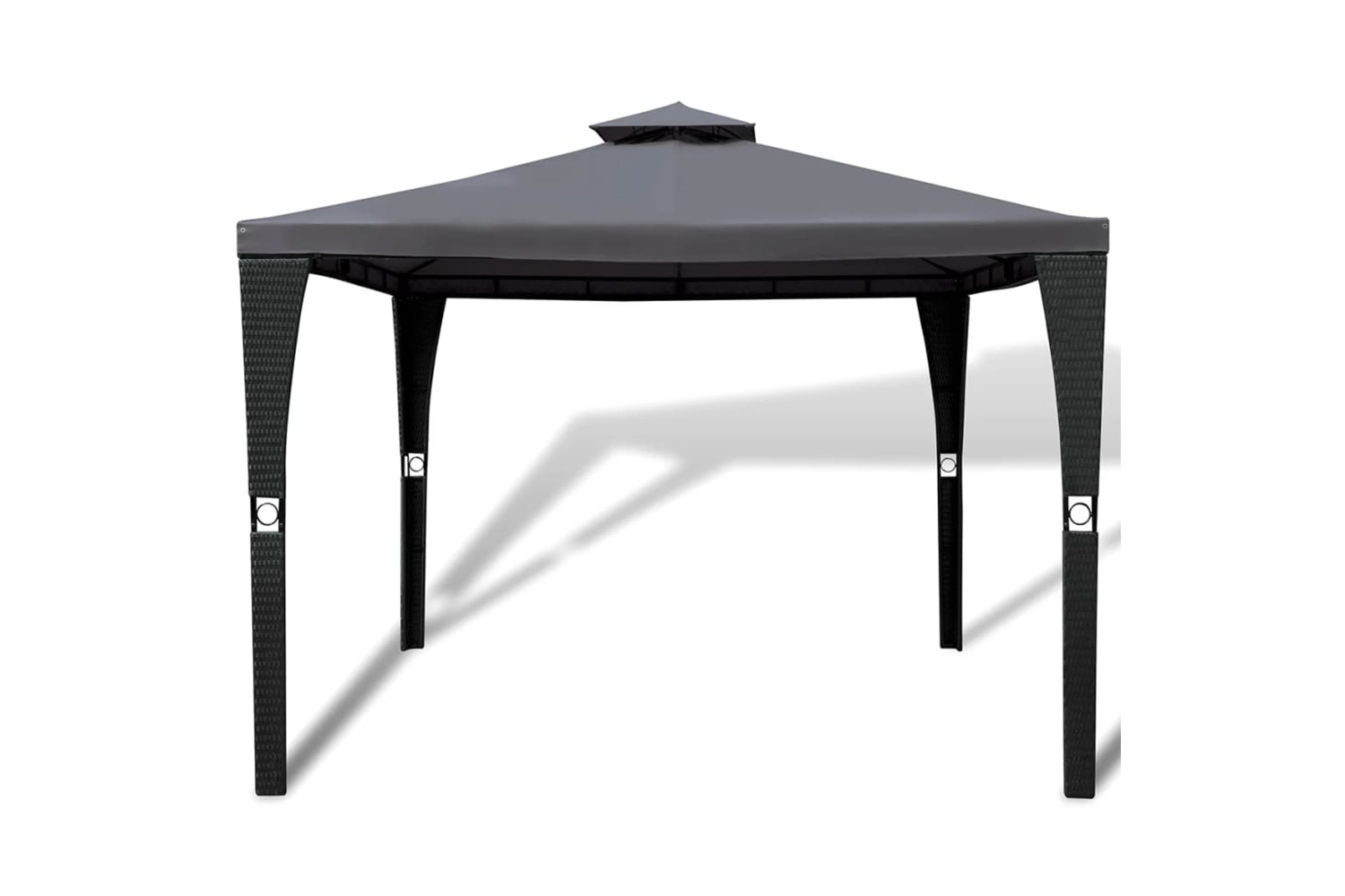 The frame is made from powder-coated steel which is rust-resistant and lightweight. The woven wicker styling gives the gazebo a chic and attractive look. The roof is made of UV-resistant and tear-resistant polyester, which is water-resistant and very durable. The twin top roof construction allows air circulation on a hot day. This Gazebo is highly durable.