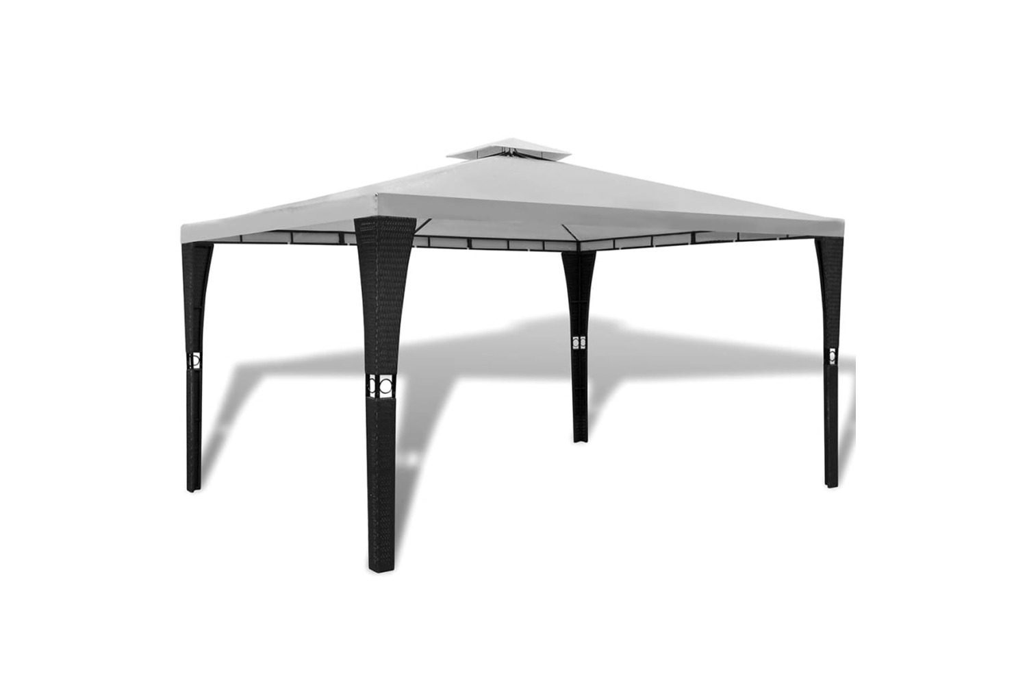 The frame is made from powder-coated steel which is rust-resistant and lightweight. The woven wicker styling gives the gazebo a chic and attractive look. The roof is made of UV-resistant and tear-resistant polyester, which is water-resistant and very durable. The twin top roof construction allows air circulation on a hot day. This Gazebo is highly durable.
