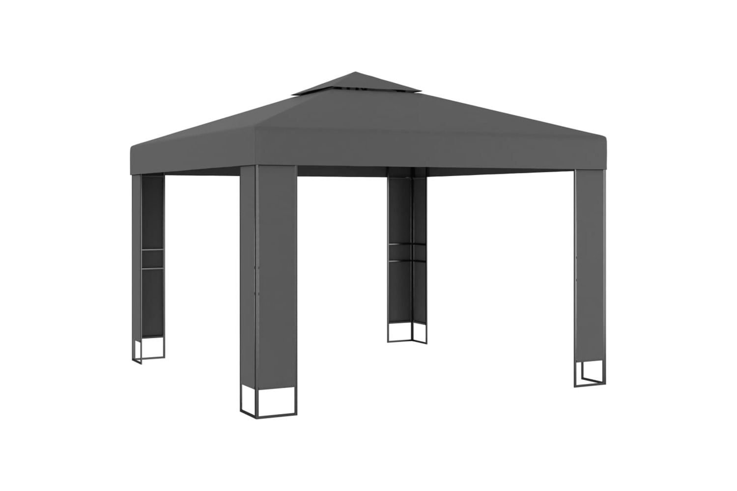 The gazebo is made of powder-coated steel. Hence, it is very sturdy and durable. Our gazebo has double roofs. Also, it is made of 100% polyester with PA coating for cover, which is water-resistant. You can also remove it for washing or storage while not in use.