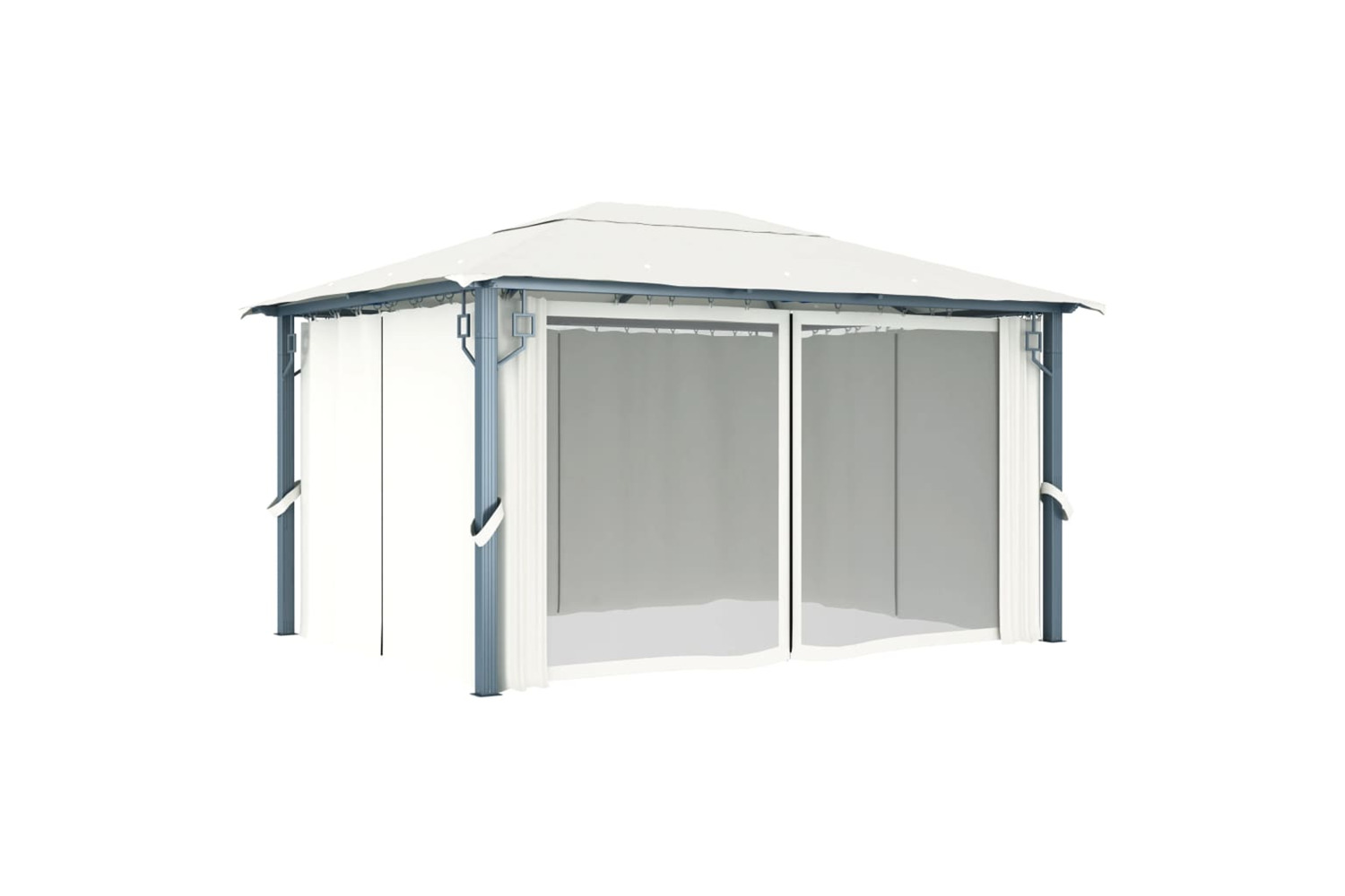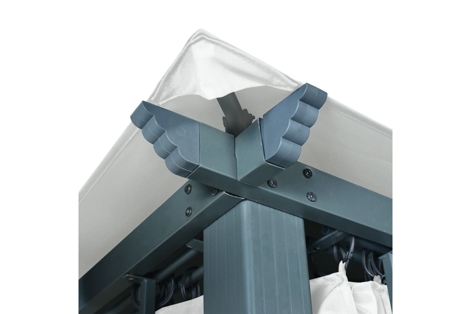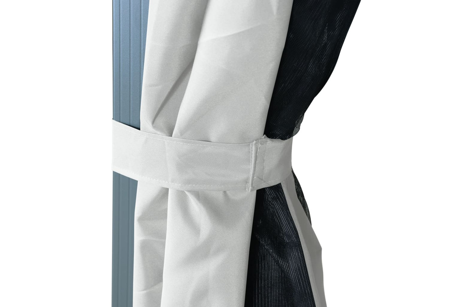 The roof, made of Oxford fabric with PA painting, guards you from the glare and harmful UV rays of direct sunlight. The gazebo is solidly constructed from strong aluminium and steel, and is consequently resistant to rust and very stable. The pavilion is delivered with 4 sidewalls, which can be drawn in bad weather. Mesh screens are also included to keep bugs out while ensure the well air circulation. Hook and loop fasteners are also included for easy attachment.