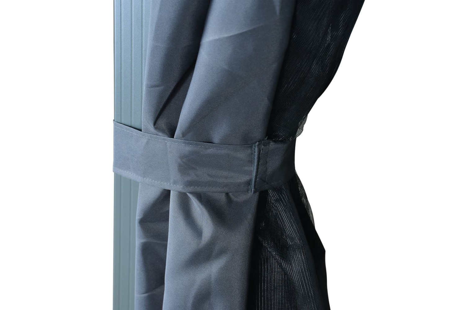 The roof, made of Oxford fabric with PA painting, guards you from the glare and harmful UV rays of direct sunlight. The gazebo is solidly constructed from strong aluminium and steel, and is consequently resistant to rust and very stable. The pavilion is delivered with 4 sidewalls, which can be drawn in bad weather. Mesh screens are also included to keep bugs out while ensure the well air circulation. Hook and loop fasteners are also included for easy attachment.