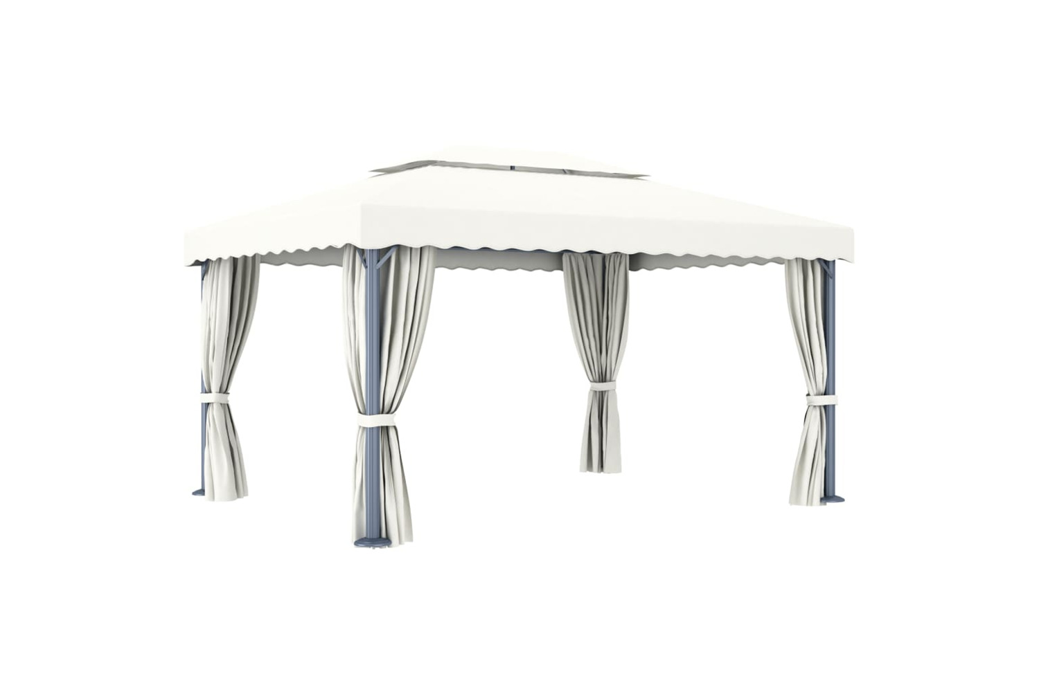 It is designed to provide a cool place for outdoor parties, family picnics, backyard barbecues and other social gatherings. It is constructed with aluminium pole and powder coated steel supporting tube, which ensures superior sturdiness and durability. The canopy and side walls are made of quality polyester fabric with PA coating, protecting you against the harmful rays and mild rain. A well-designed 2-tier roof ensures ample airflow underneath. Additionally, the curtains and mesh screens are included for full protection, giving you added privacy while keeping annoying mosquitoes and other insects away. Hooks and loop fasteners are included for easy attachment. What's more, the string light creates a cosy atmosphere in your garden when the sun goes down. The lights bring no pollutions to the environment as it is charged by solar energy during the day.