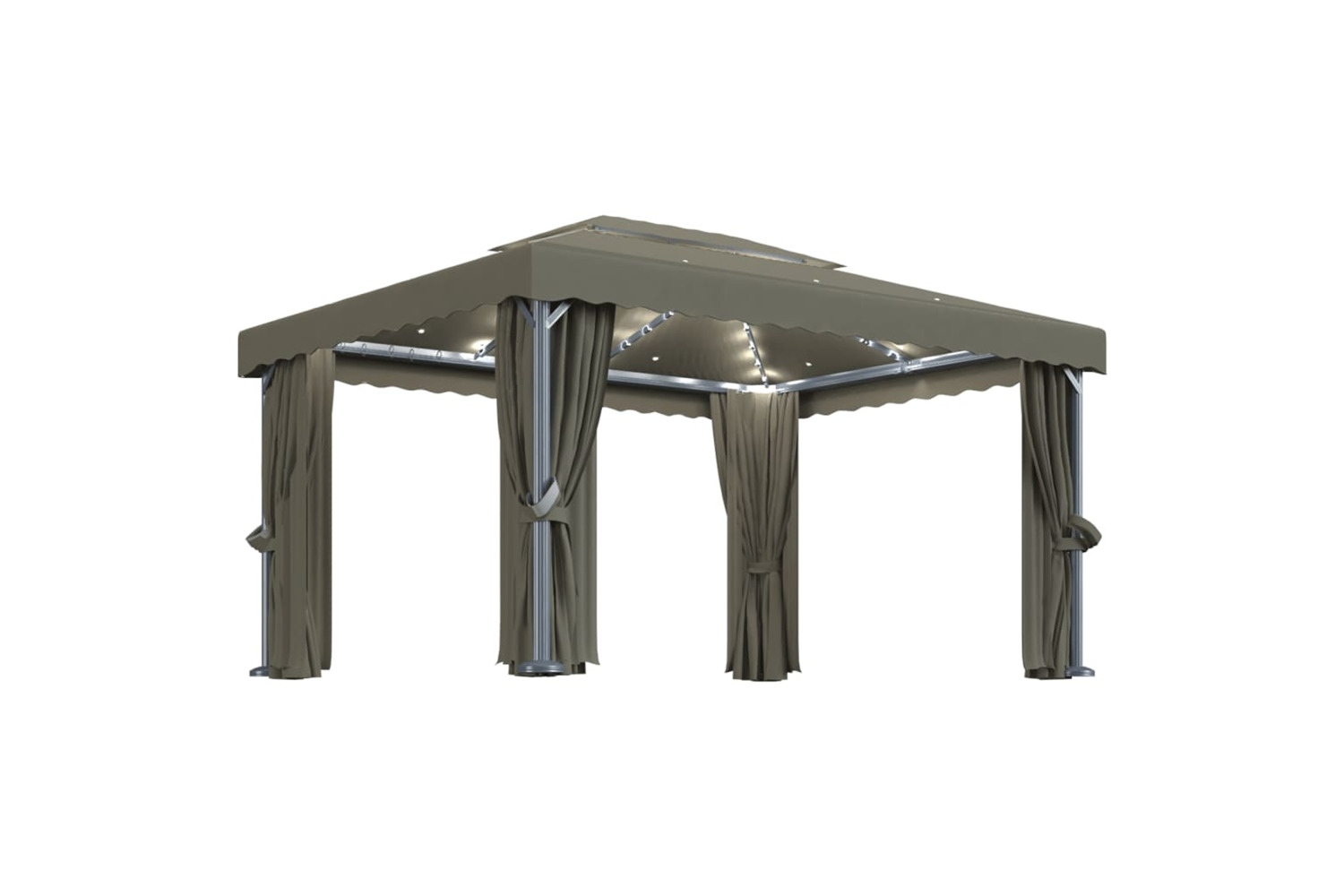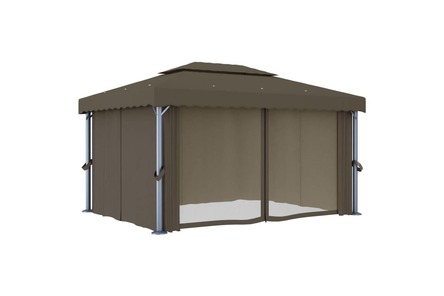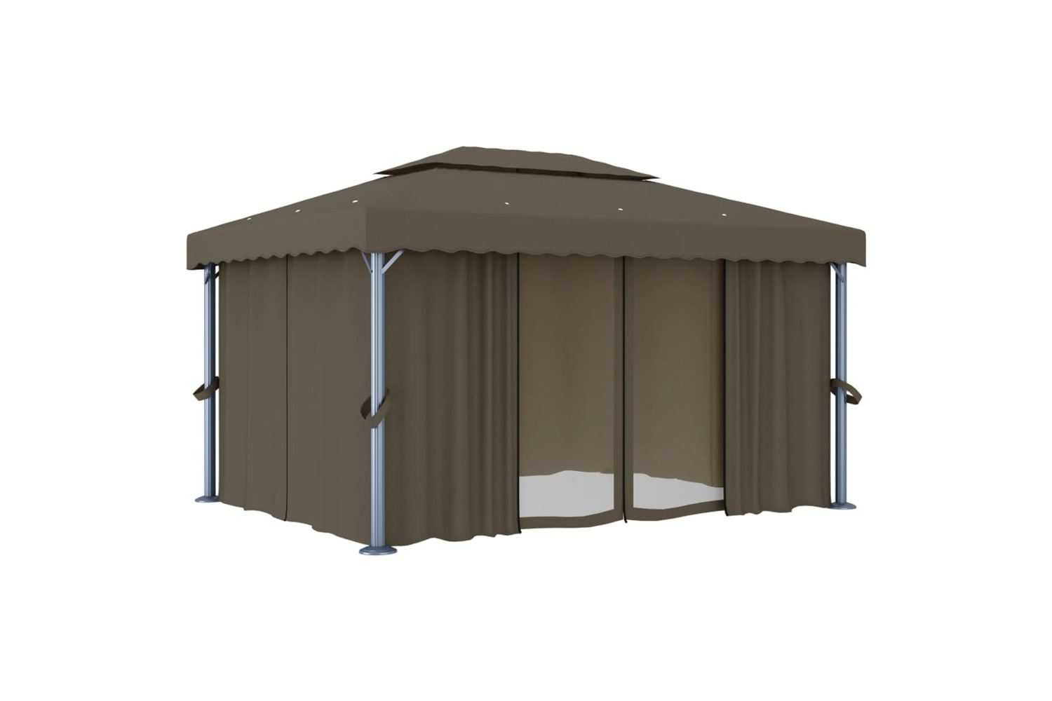 It is designed to provide a cool place for outdoor parties, family picnics, backyard barbecues and other social gatherings. It is constructed with aluminium pole and powder coated steel supporting tube, which ensures superior sturdiness and durability. The canopy and side walls are made of quality polyester fabric with PA coating, protecting you against the harmful rays and mild rain. A well-designed 2-tier roof ensures ample airflow underneath. Additionally, the curtains and mesh screens are included for full protection, giving you added privacy while keeping annoying mosquitoes and other insects away. Hooks and loop fasteners are included for easy attachment. What's more, the string light creates a cosy atmosphere in your garden when the sun goes down. The lights bring no pollutions to the environment as it is charged by solar energy during the day.