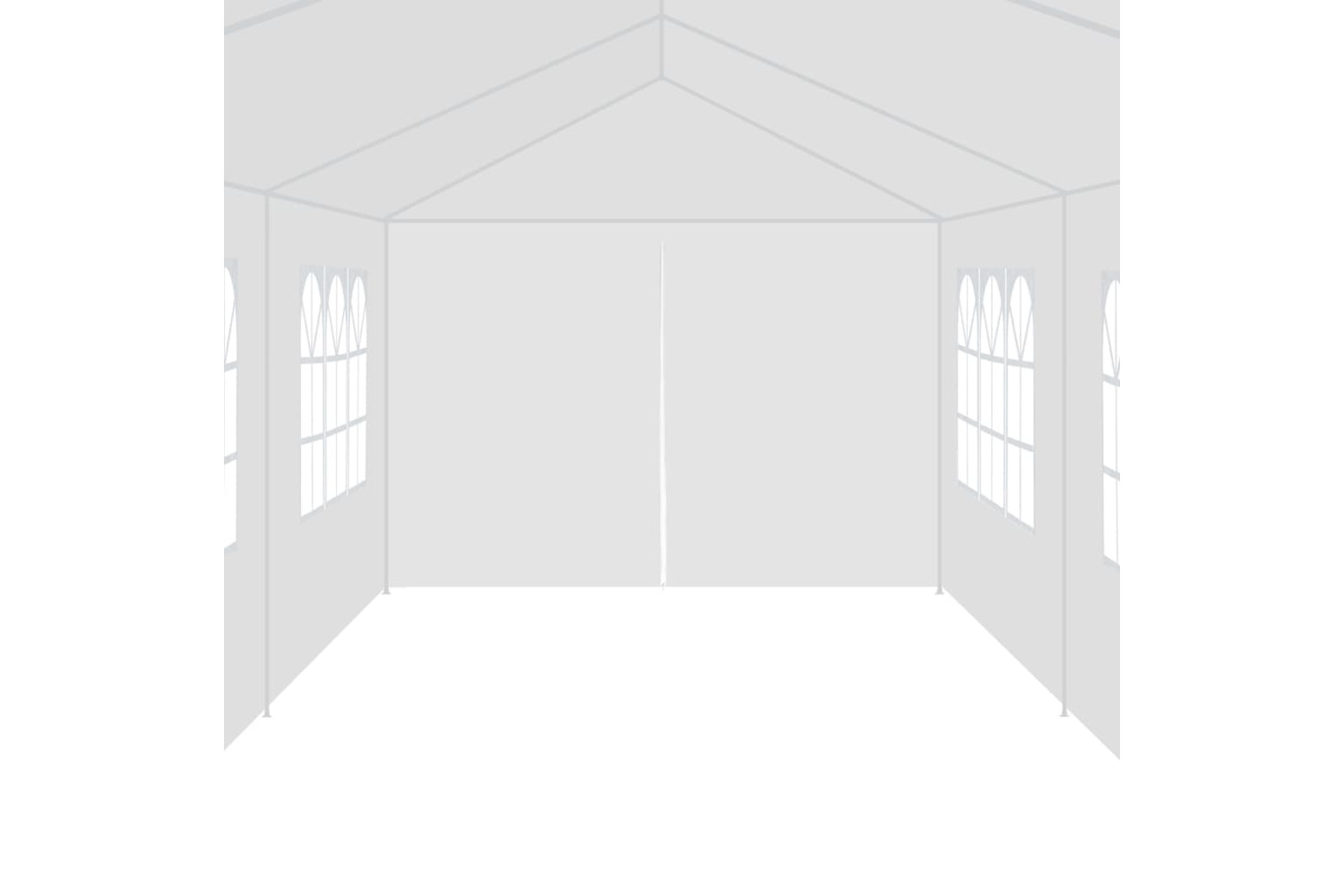 Made of 100% polyethylene material, the party tent is UV resistant and water resistant. The marquee has 8 removable side panels, each with decorative windows, and 2 door panels with zips for easy entrance. This frame is manufactured from rust-resistant steel and thus highly durable. Assembly is easy.