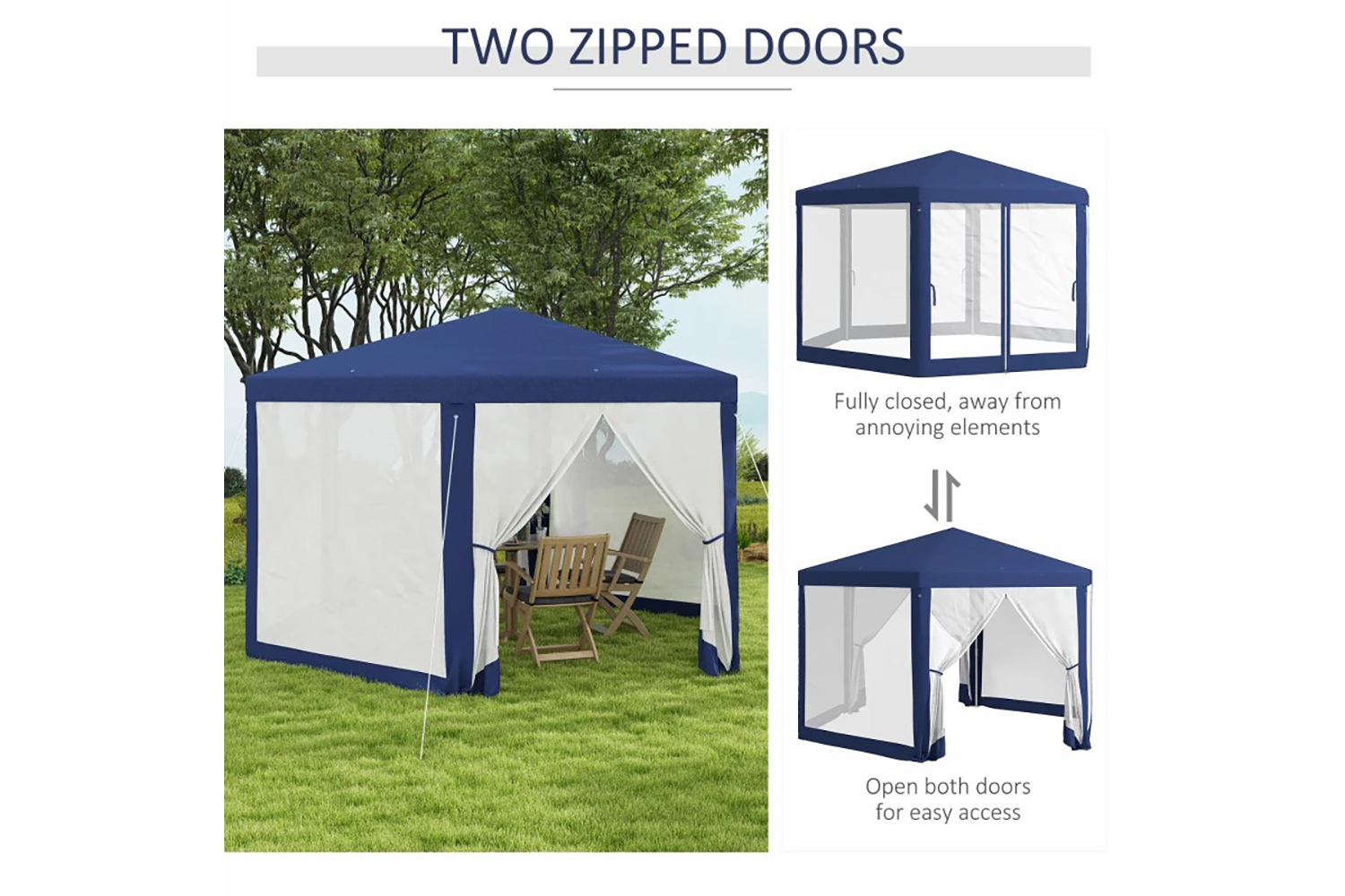 - Two zippered doors for easy access