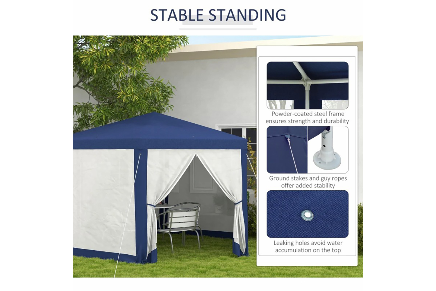 Outsunny's canopy tent with sidewalls adds a functional touch to any outdoor space, like patio or backyard. With a solid steel frame and polyester covering, this event tent offers an excellent shade solution and maintains good air circulation. You can relax in the comfort of your outside house without worrying about the disturbance of unwanted elements. Also, the wedding tent will be a great space for you to entertain your friends and family members!.
