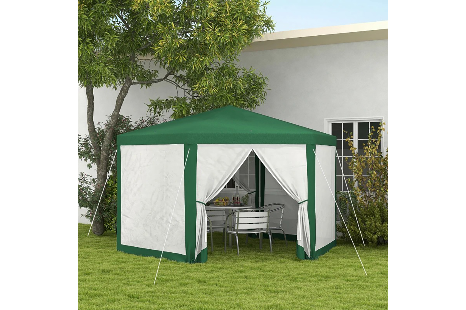Outsunny's canopy tent with sidewalls adds a functional touch to any outdoor space, like patio or backyard. With a solid steel frame and polyester covering, this event tent offers an excellent shade solution and maintains good air circulation. You can relax in the comfort of your outside house without worrying about the disturbance of unwanted elements. Also, the wedding tent will be a great space for you to entertain your friends and family members!.