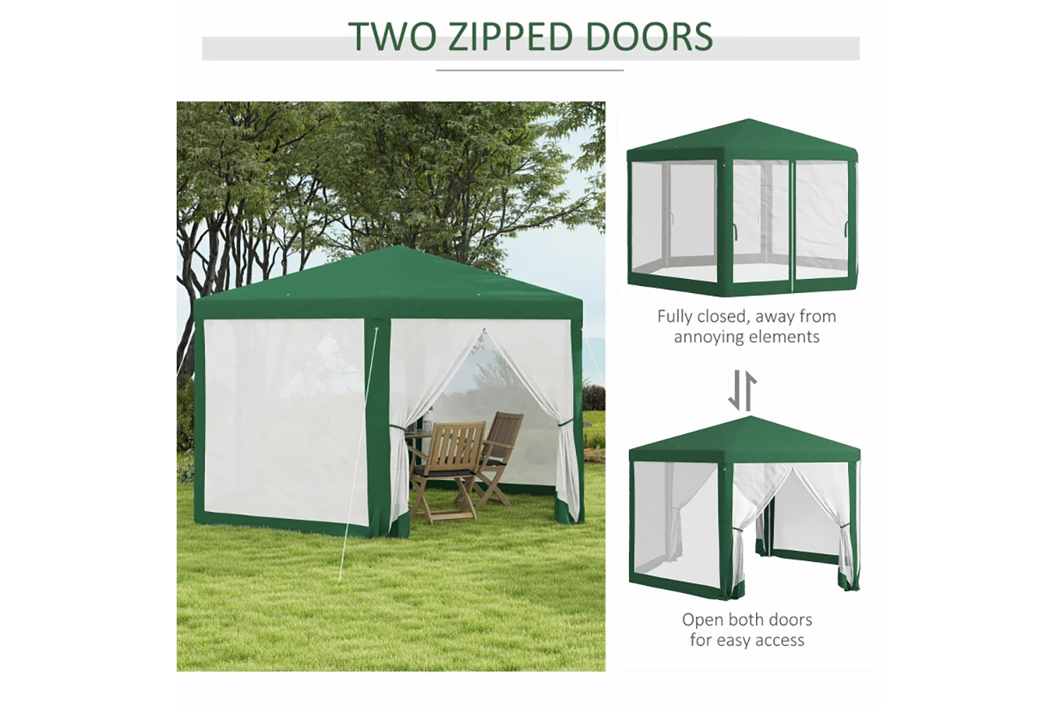 - Two zippered doors for easy access