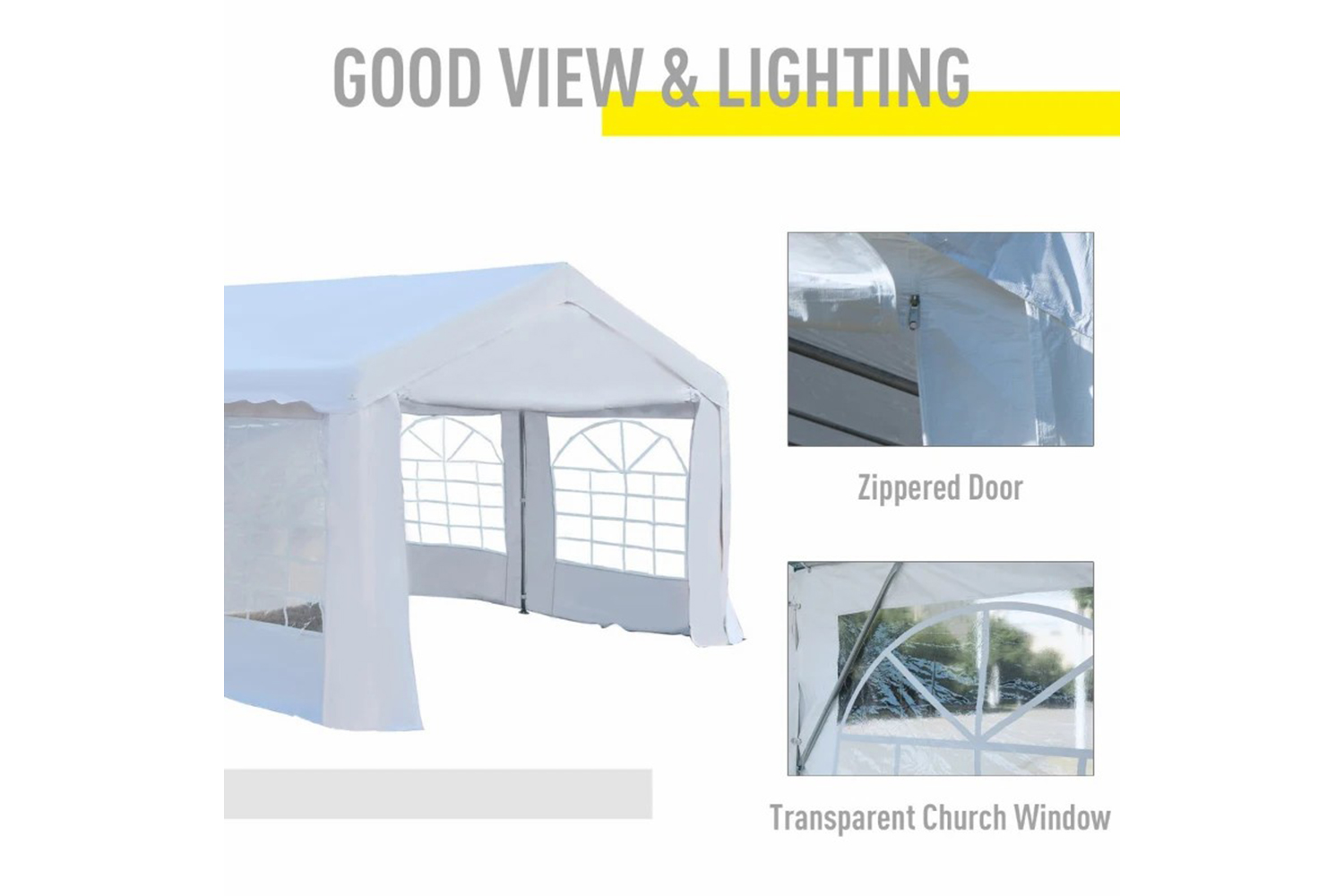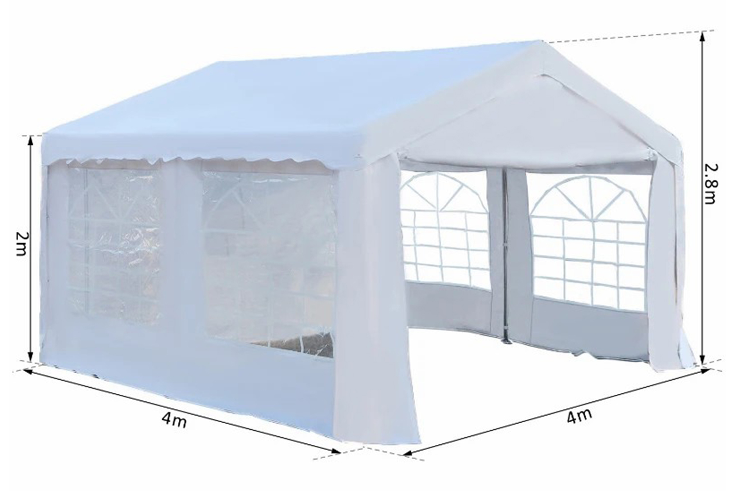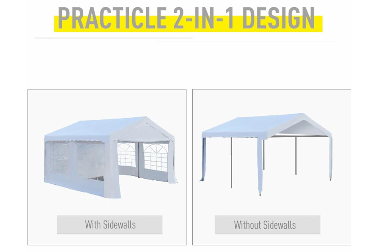 This is a great product and ideal for occasions which require minimal protection. It incorporates a heavy duty steel frame. Ideal for commercial or recreational use, car, boat storage, parties, weddings, backyard events, etc.