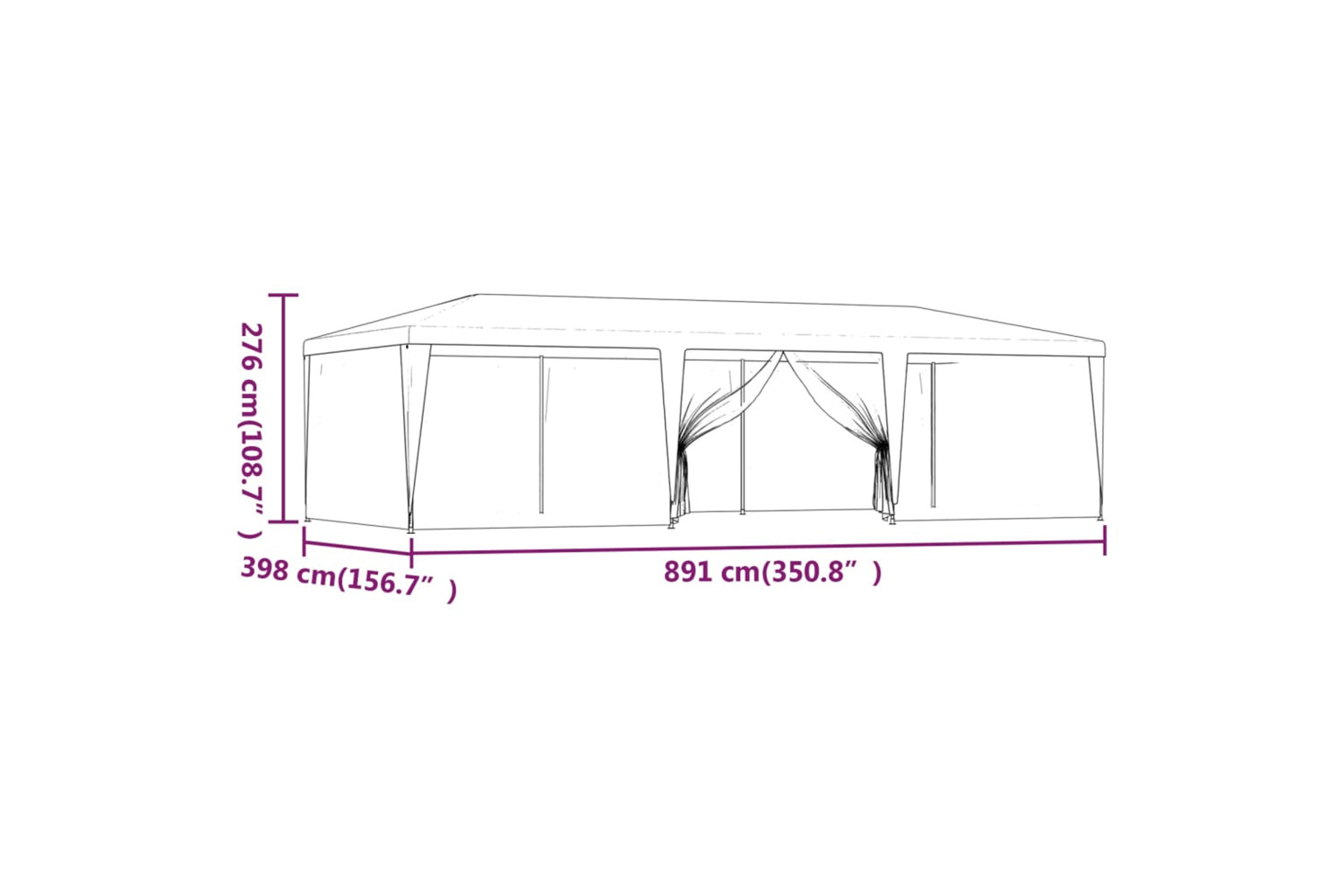 - Practical design: The marquee has eight mesh side walls, which protect you from pesky insects. And one of the side walls has a zipper for entrance and easy access.