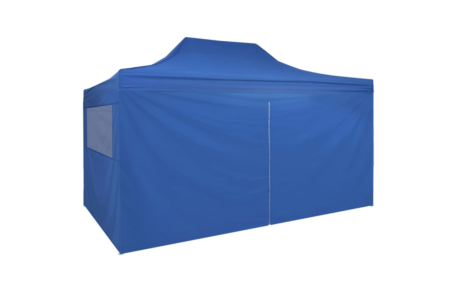 Made of heavy-duty, powder-coated steel, this pop-up party tent is extremely durable. The roof covering is made of oxford fabric with a PVC coating and is 100% waterproof and UV protective. The tent has four side walls, one of which has a zipped entrance for easy access. The marquee is foldable for easy storage and transport.