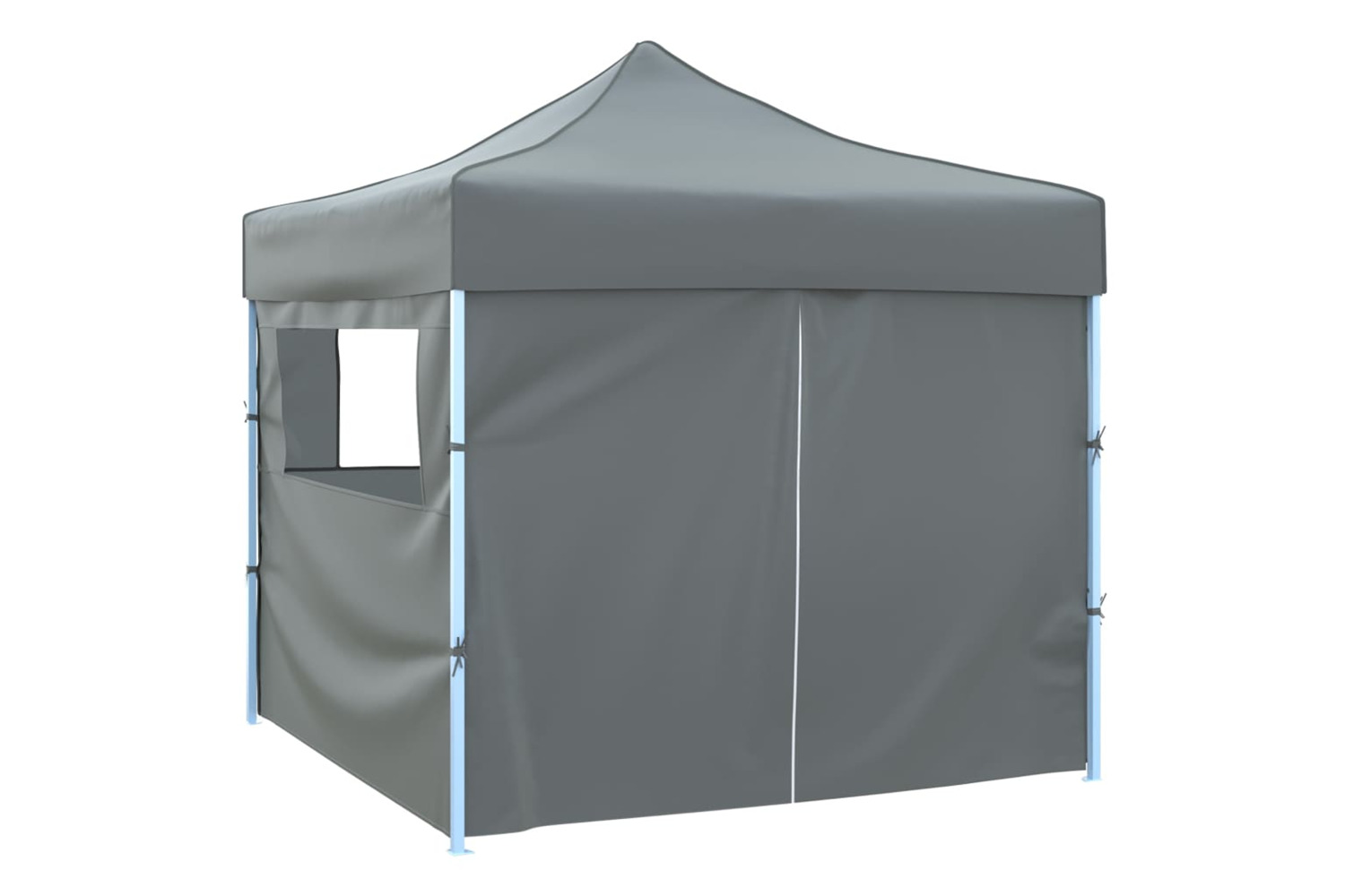 Made of heavy-duty, powder-coated steel, this pop-up party tent is extremely durable. The roof covering is made of oxford fabric with a PVC coating, making it water and UV resistant. The tent has four side walls, one of which has a zipped entrance for easy access. The marquee is foldable for easy storage and transport.