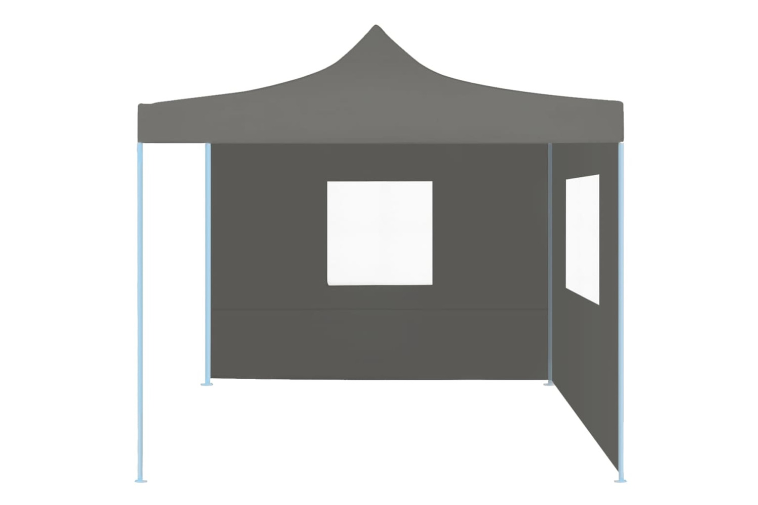 Made of heavy-duty, powder-coated steel, this pop-up party tent is extremely durable. The roof covering is made of oxford fabric with a PVC coating, making it water and UV resistant. The tent has two side walls. The marquee is foldable for easy storage and transport.