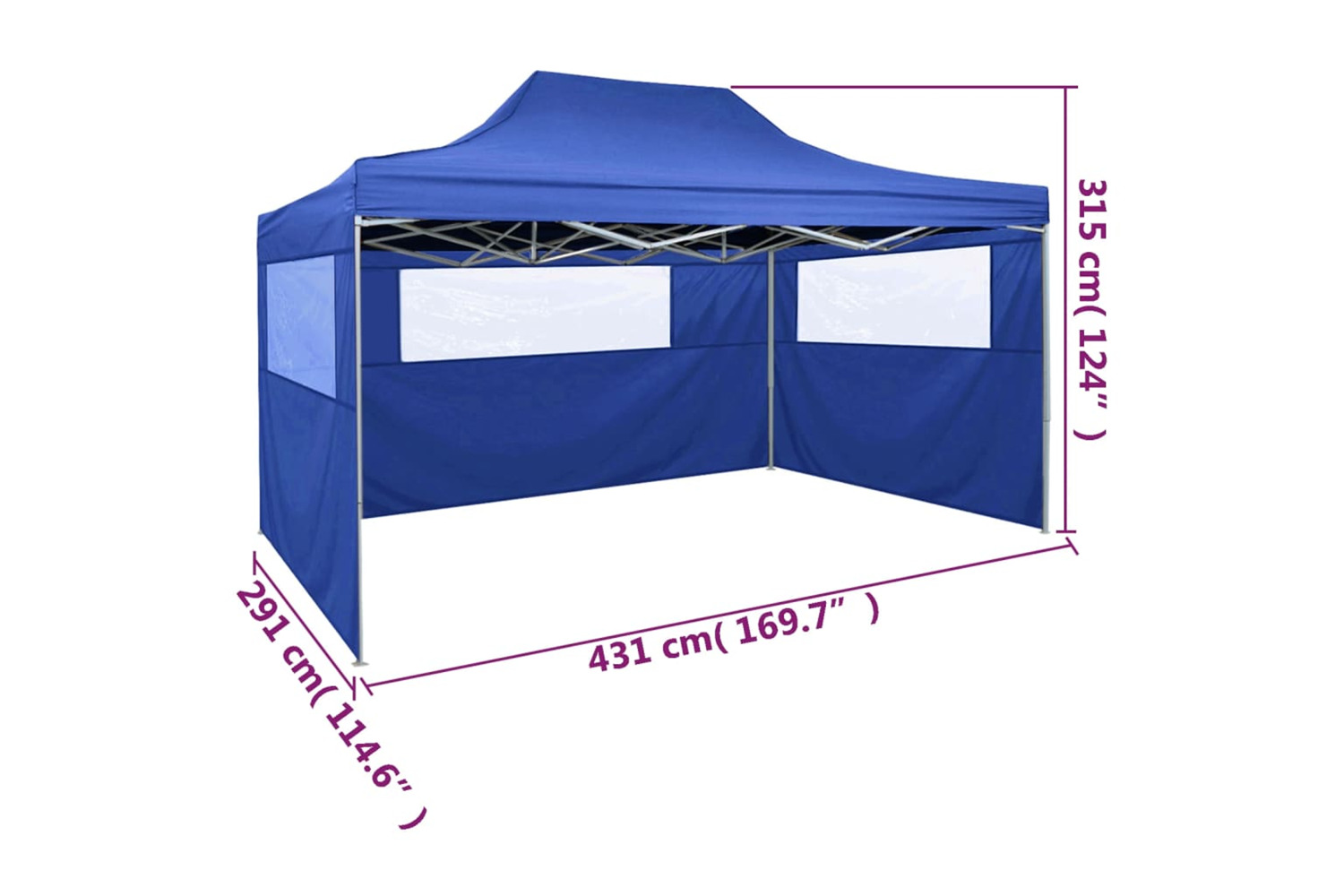 Made of heavy-duty, powder-coated steel, this pop-up party tent is extremely durable. The roof covering is made of oxford fabric with a PVC coating and is 100% waterproof and UV protective. The marquee is foldable for easy storage and transport.