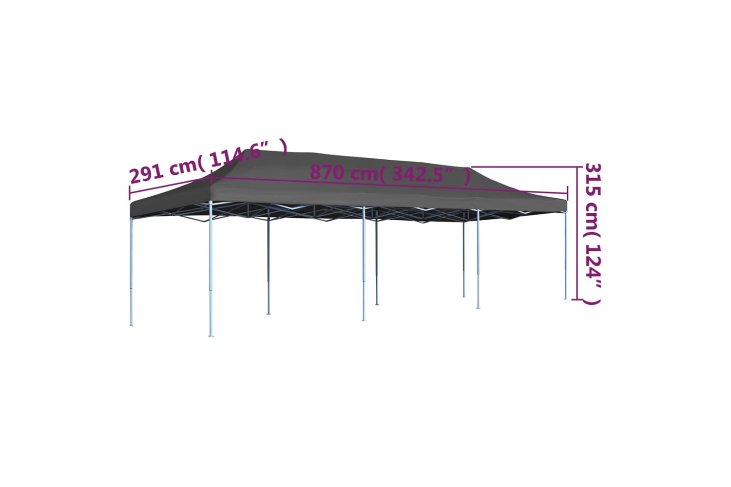 The outdoor canopy has a UV- and water-resistant roof that is made of oxford with PVC coating and is therefore perfect for outdoor use. The frame is manufactured from rust-resistant steel, making the garden marquee stable and durable. The pop-up party tent is foldable for easy storage and transportation. It is easy to assemble.