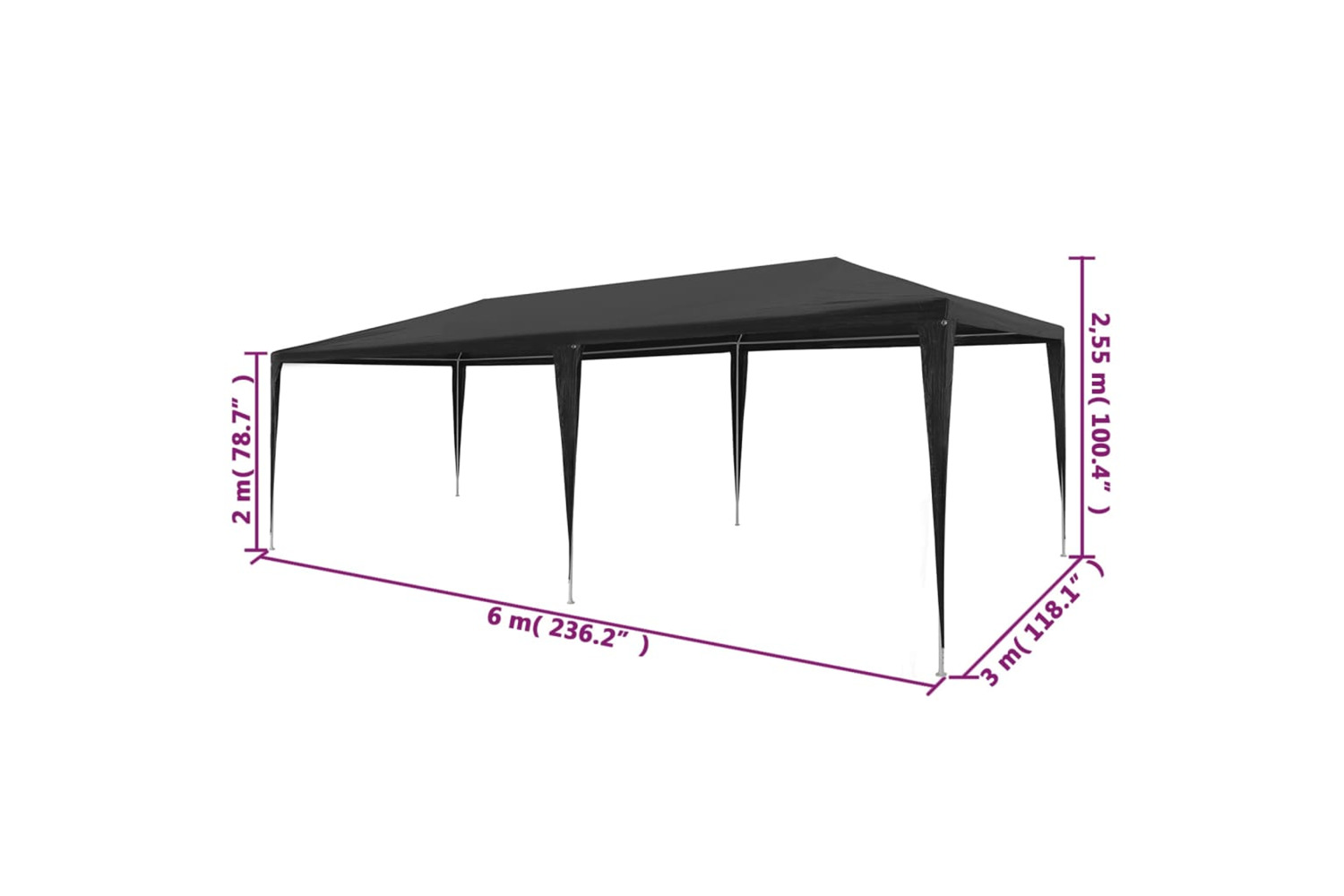 The party tent is made of UV- and water-resistant polyethylene material and therefore very practical for outdoor use. The frame is manufactured from rust-resistant steel, making the outdoor canopy stable and durable. The garden gazebo is easy to assemble.