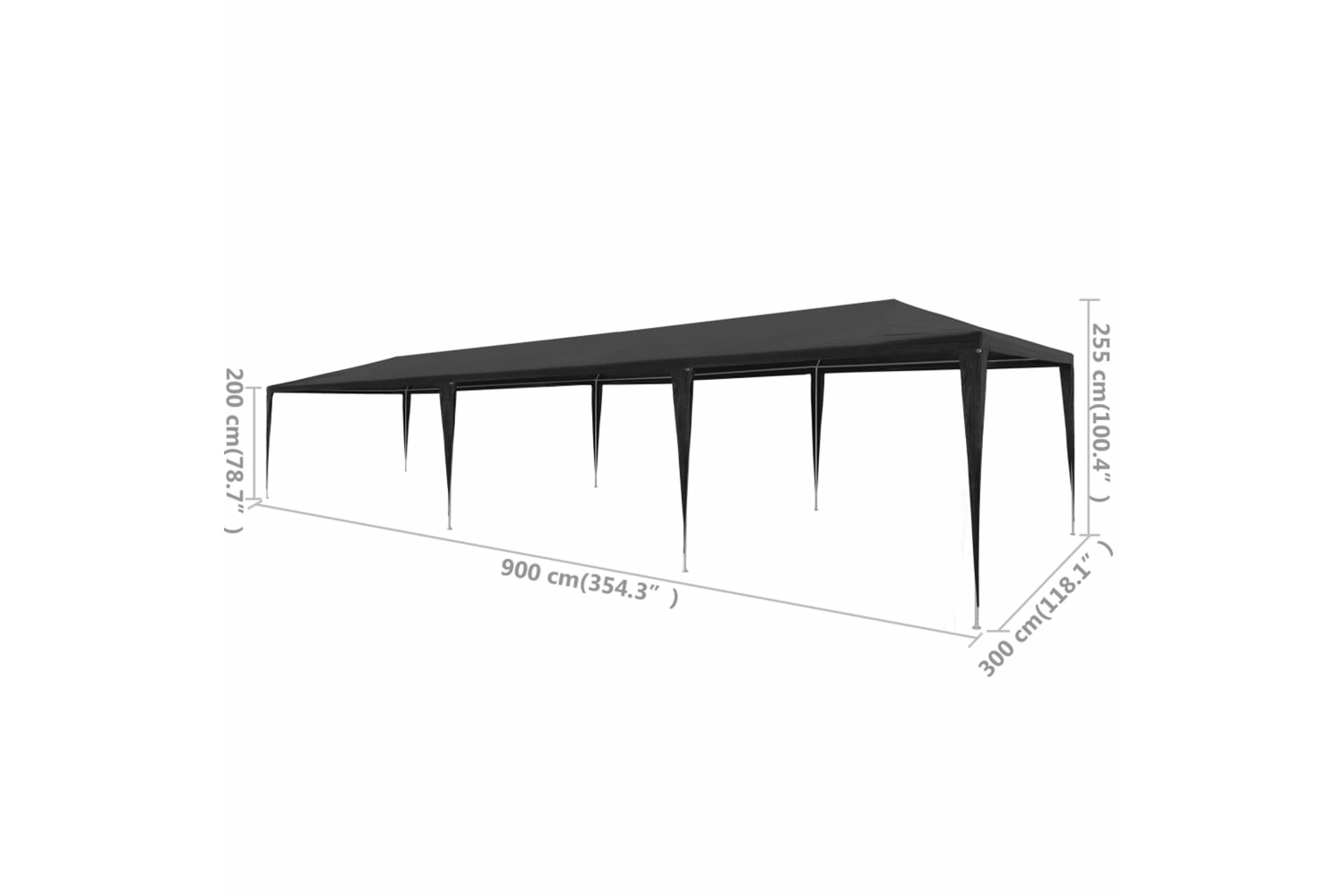 The party tent is made of UV- and water-resistant polyethylene material and therefore very practical for outdoor use. The frame is manufactured from rust-resistant steel, making the outdoor canopy stable and durable. The garden gazebo is easy to assemble.