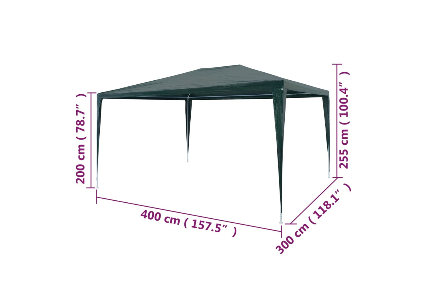 The party tent is made of UV- and water-resistant polyethylene material and therefore very practical for outdoor use. The frame is manufactured from rust-resistant steel, making the outdoor canopy stable and durable. The garden gazebo is easy to assemble.