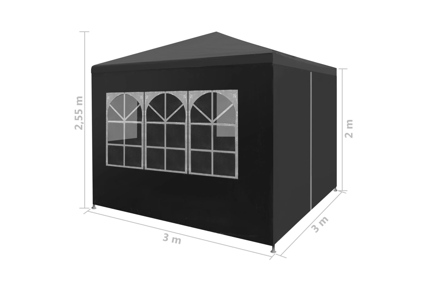 The garden marquee is made of UV- and water-resistant polyethylene material and therefore very practical for outdoor use. The frame is manufactured from rust-resistant steel, making the outdoor canopy stable and durable. The party tent has side panels, each with decorative windows, and 1 door panel with a zip for easy entrance. The garden gazebo is easy to assemble.