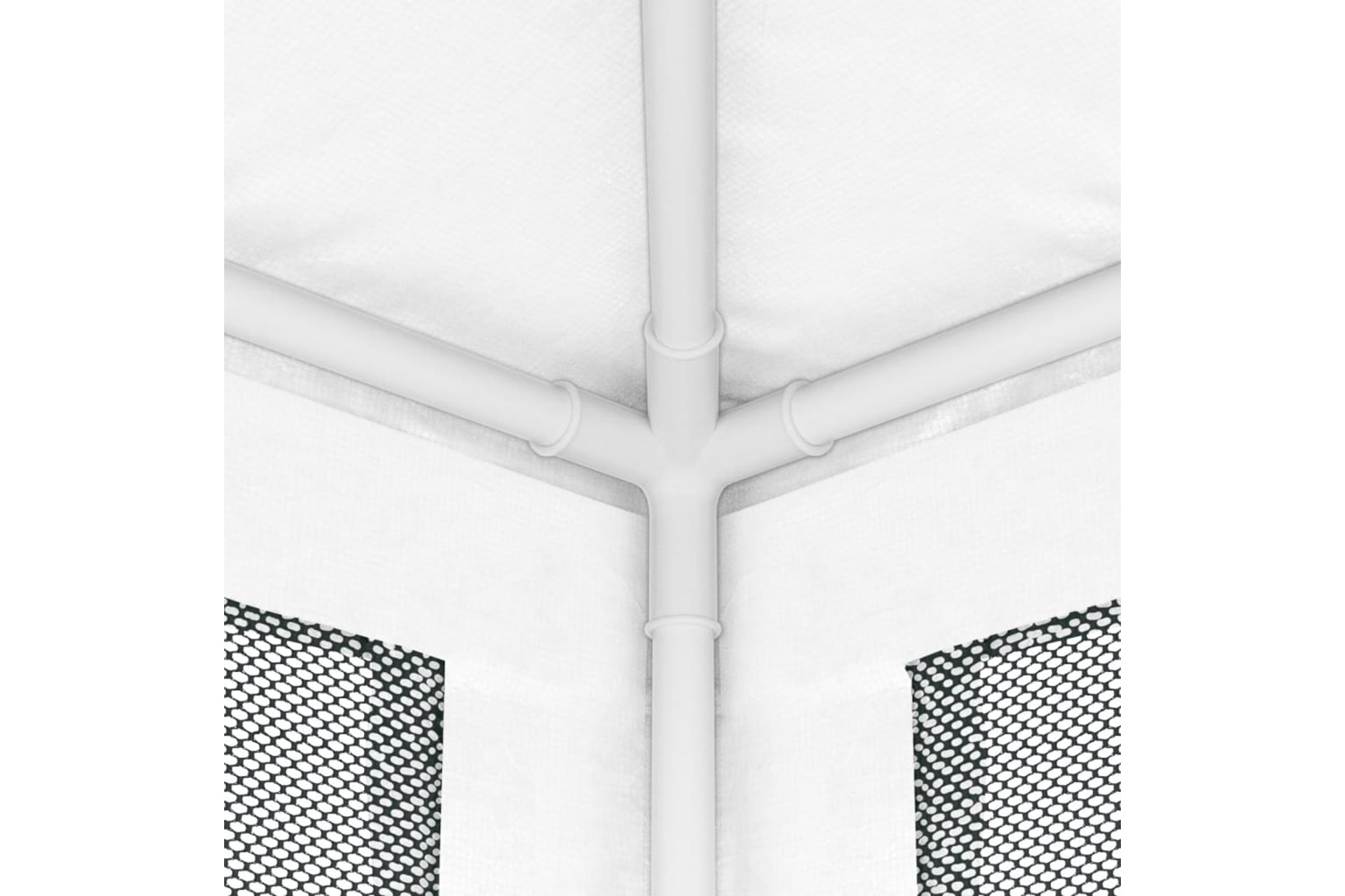 Made of heavy-duty iron, this partytent is extremely durable. The roof covering is made of high-quality PE, making it water and UV resistant. The tent has four mesh side walls, which protects you from pesky insects. And one of the side walls has a zipped entrance for easy access. Additionally, the partytent is easy to install with included mounting accessories.