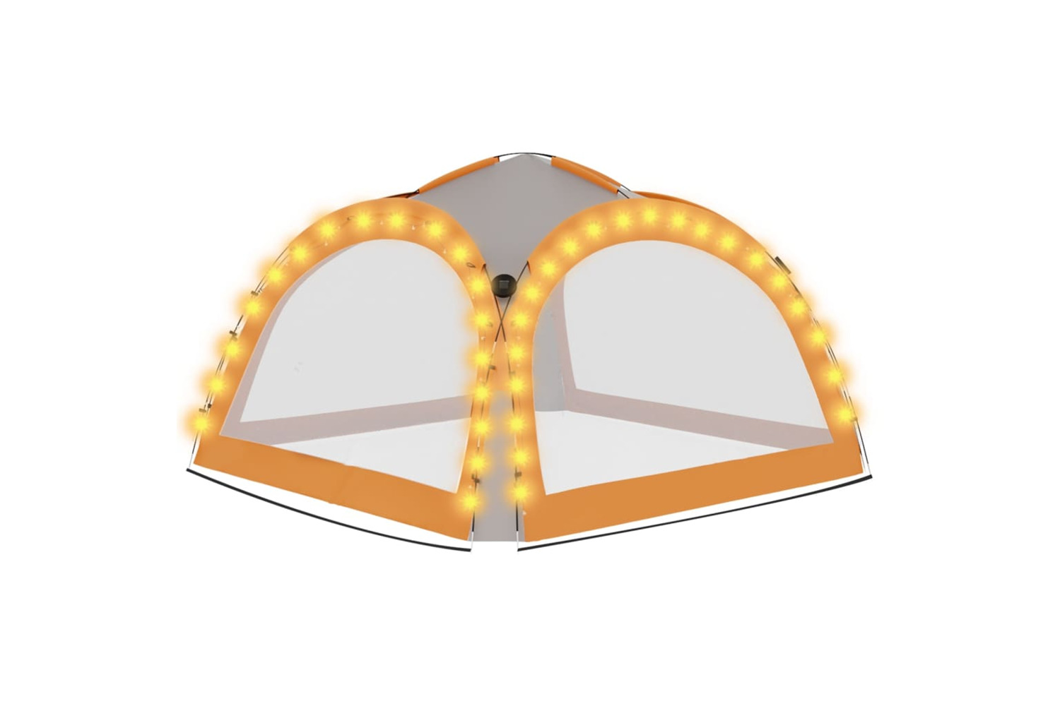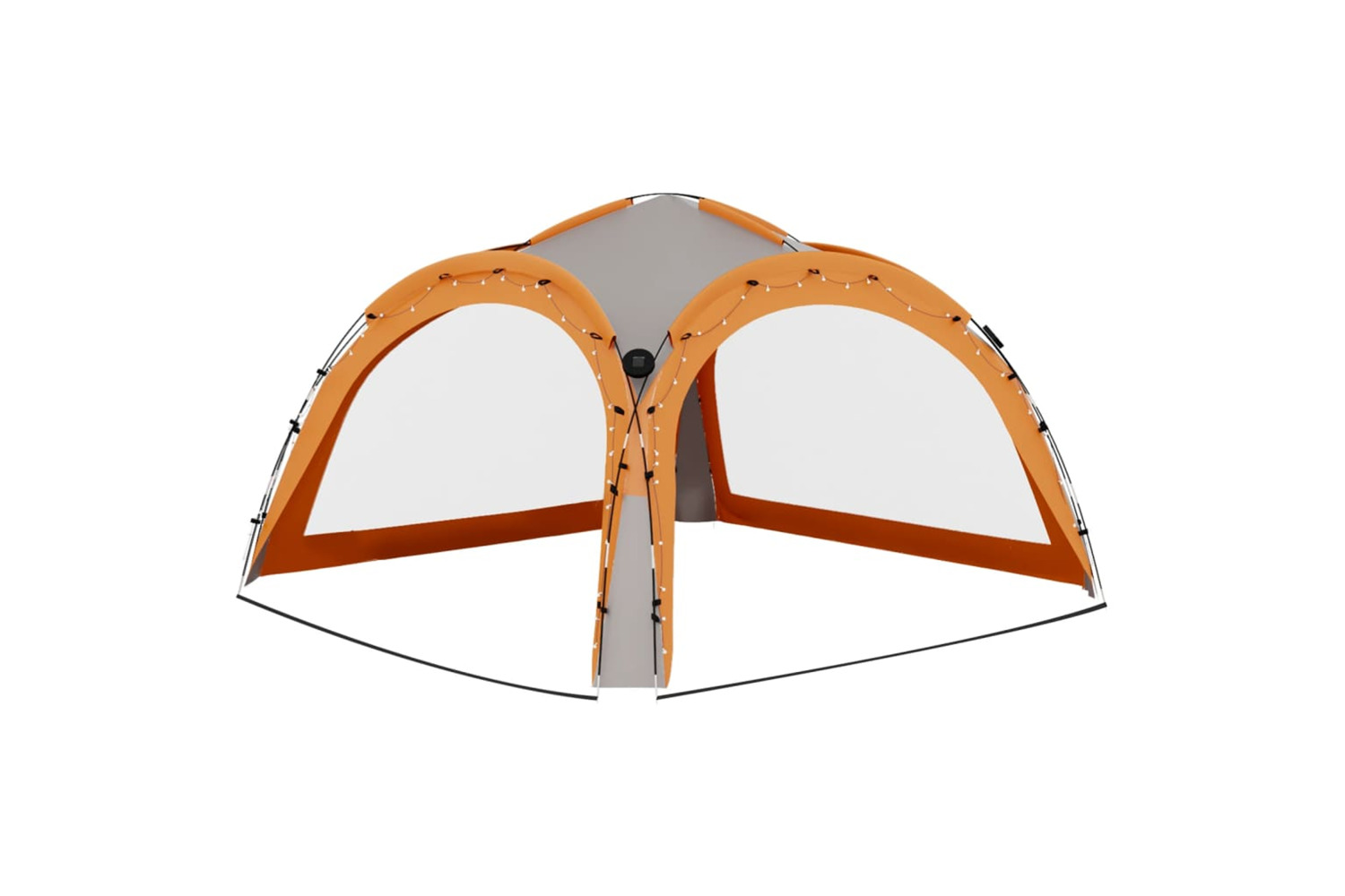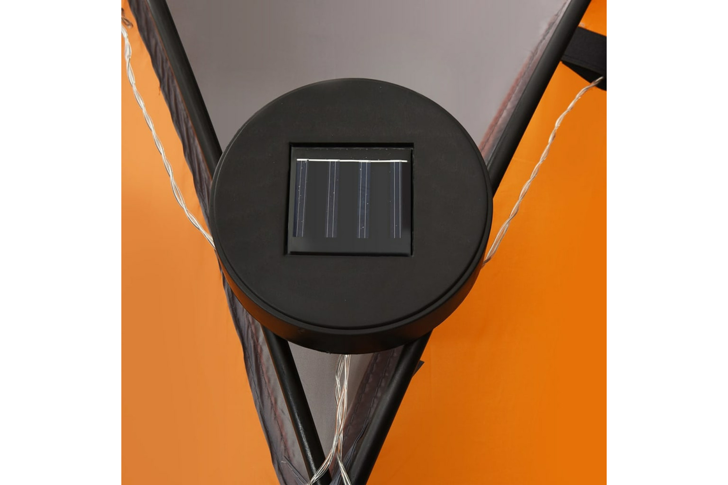 The party tent is made of 100% polyester fabric with PA coating, enabling it UV resistant. The frame is constructed from robust fiberglass, and is therefore resistant to rust and also lightweight. The four included "mosquito net" sidewalls offer ideal protection against all kinds of insects. Equipped with a zipper, they can be attached within seconds. Additionally, the LED lighting with 96 LEDs can be easily switched on and off by hand, and the supplied solar module charges the integrated battery during the day.