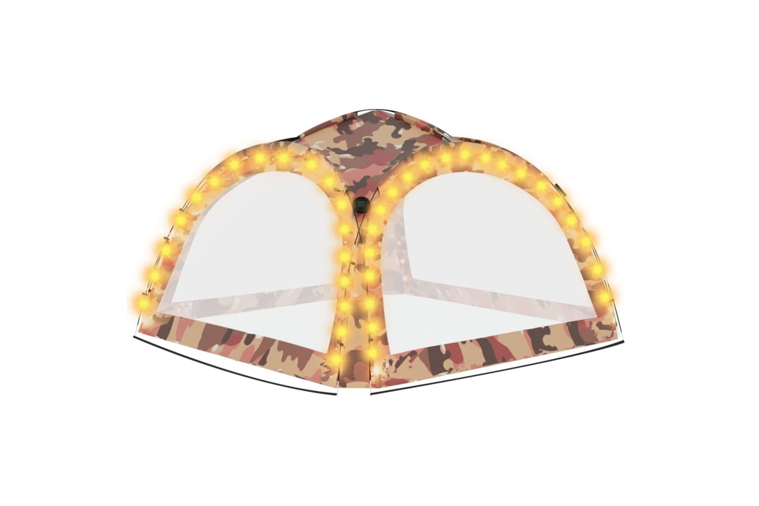 The party tent is made of 100% polyester fabric with PA coating, enabling it UV resistant. The frame is constructed from robust fiberglass, and is therefore resistant to rust and also lightweight. The four included "mosquito net" sidewalls offer ideal protection against all kinds of insects. Equipped with a zipper, they can be attached within seconds. Additionally, the LED lighting with 96 LEDs can be easily switched on and off by hand, and the supplied solar module charges the integrated battery during the day.