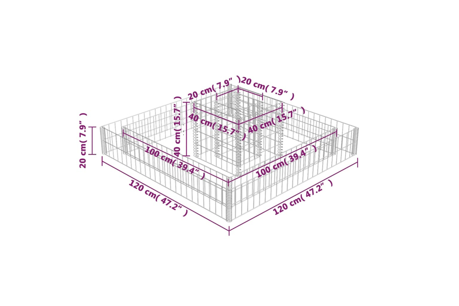 The stable gabion is designed to be filled with rocks or gravels. Made of rust-proof and weather-resistant galvanised steel, the gabion is very stable and durable. The mesh grid is formed by welding transverse and longitudinal wires at each and every intersection for extra stability.
